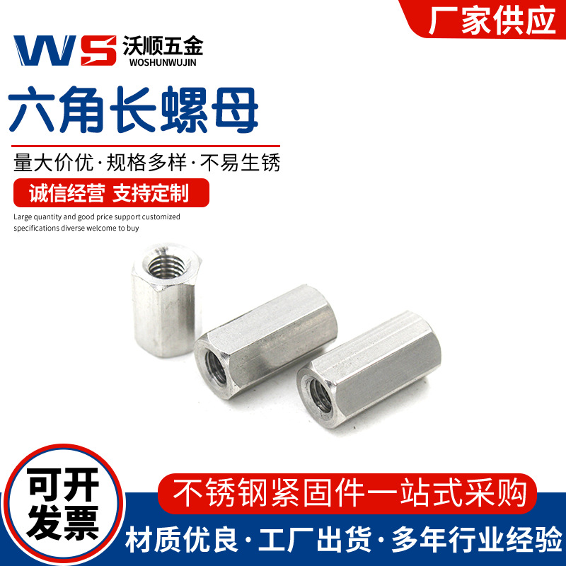 304 스테인레스 스틸 육각 긴 너트 길어진 두꺼운 너트 M6-M20 연결 너트 기계 장비 액세서리스토어 가기
