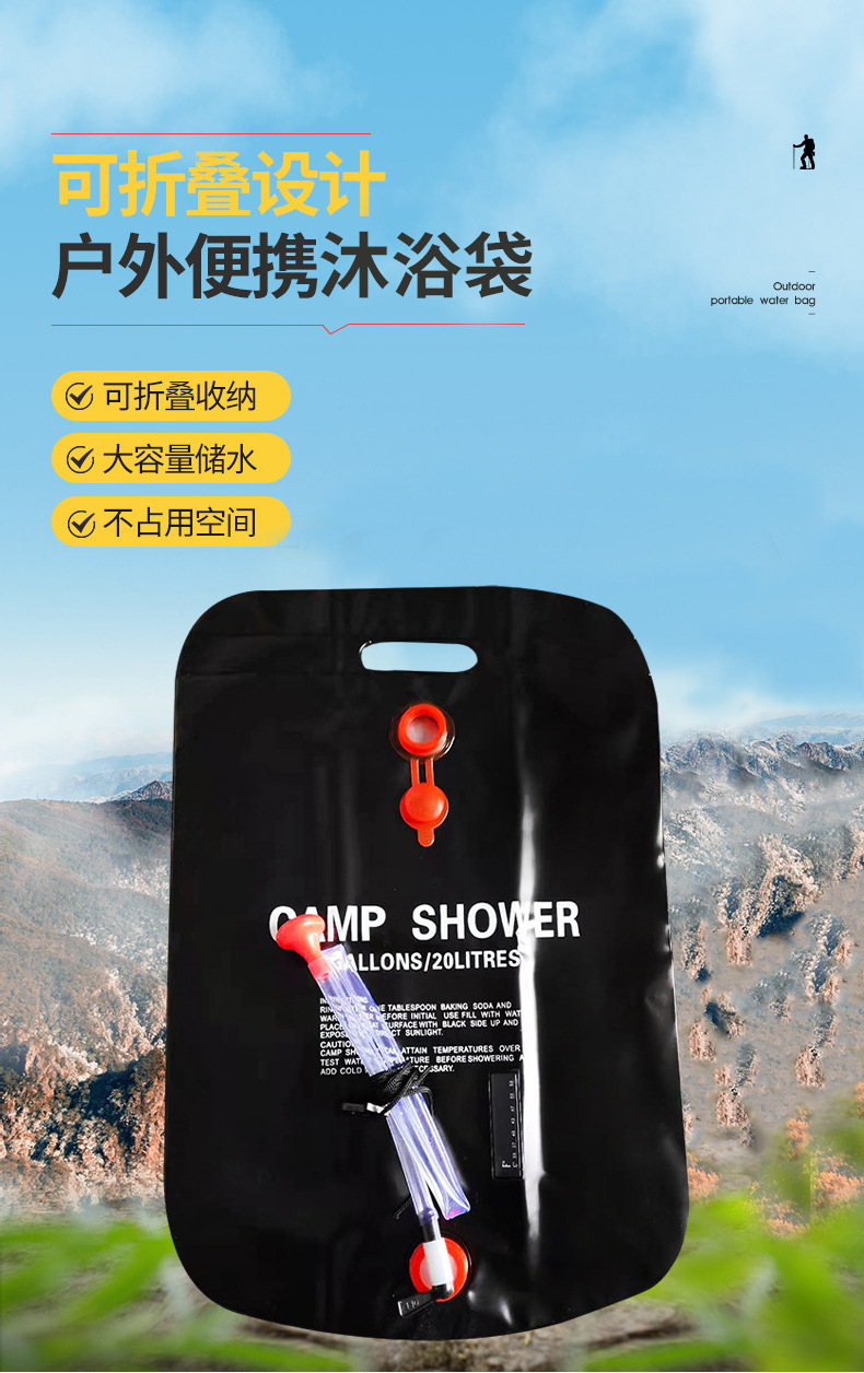 맞춤형 야외 20l 목욕 가방은 온도계 태양 휴대용 야외 샤워 백으로 온도를 표시 할 수 있습니다.스토어 가기