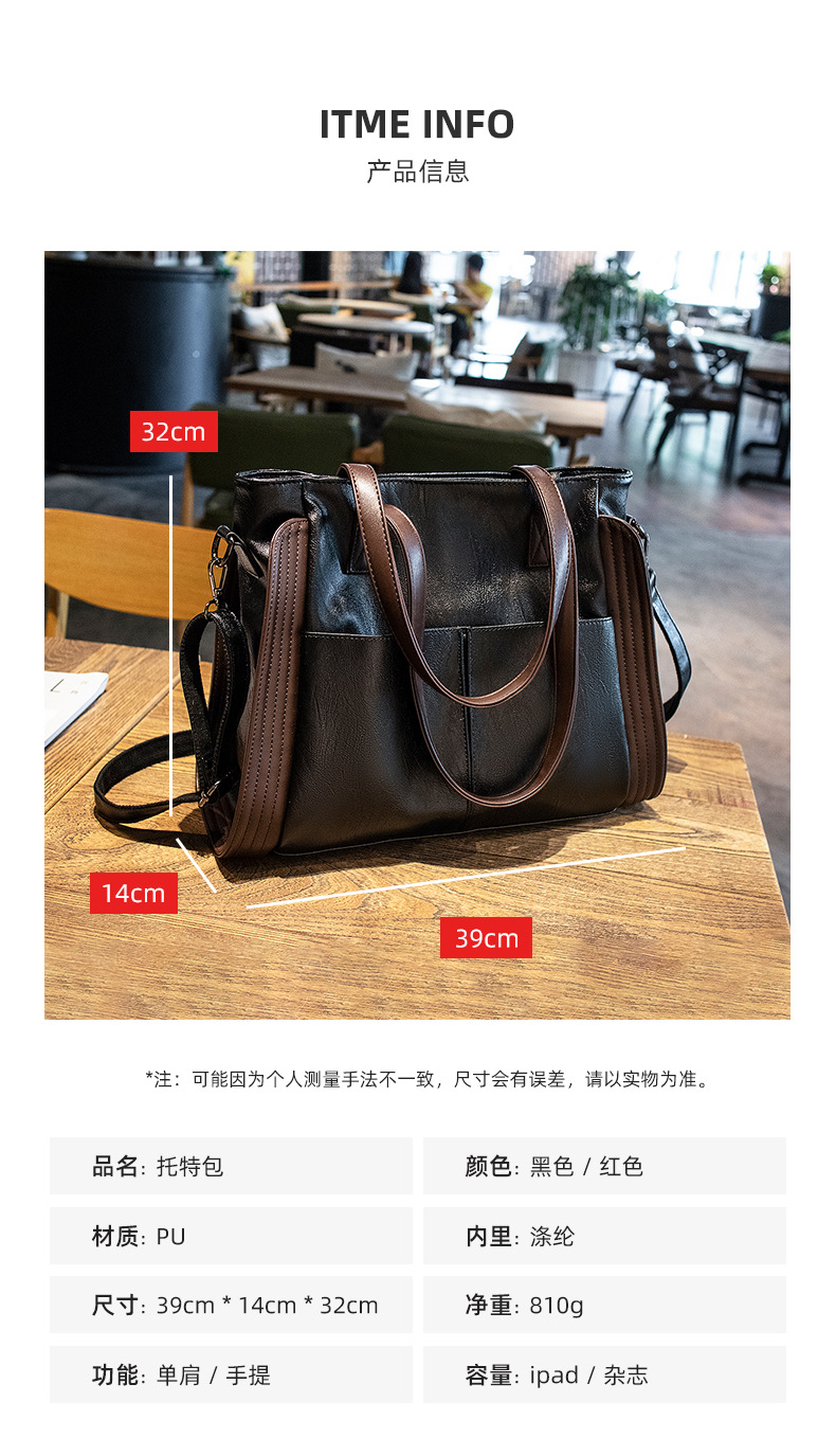 라이브 방송에서 판매하는 대용량 여성 가방, 다용도, 가벼운 럭셔리, 출퇴근용, 숄더백, 핸드백, 스타일리쉬, 크로스백, 부드러운 가죽, 패셔너블한 토트백