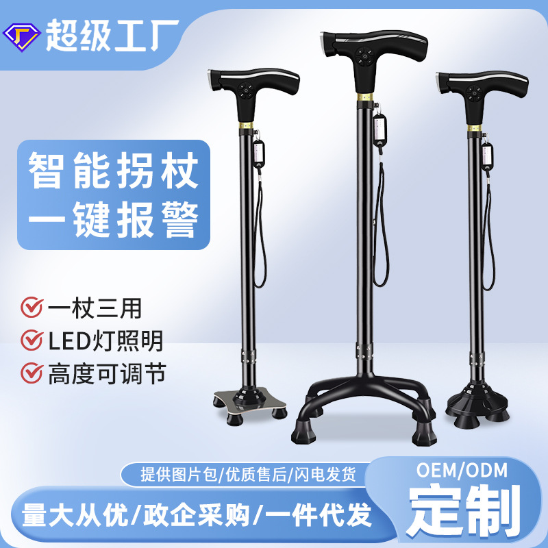 2025년 노인을 위한 새로운 스마트 4족 목발, 가벼운 미끄럼 방지 및 낙하 방지 지팡이가 있는 다기능 목발스토어 가기