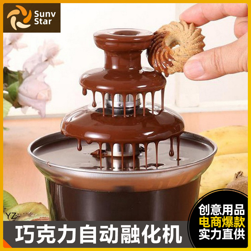 迷你家用三层巧克力喷泉机巧克力火锅自制巧克力融化塔带加热火锅IMG_9473_副本