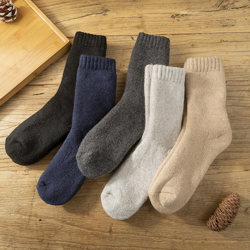가을과 겨울 새로운 두꺼운 단색 남자의 긴 양모 양말 여자의 기모 따뜻한 중간 캐주얼 커플 쓰레기 양말스토어 가기