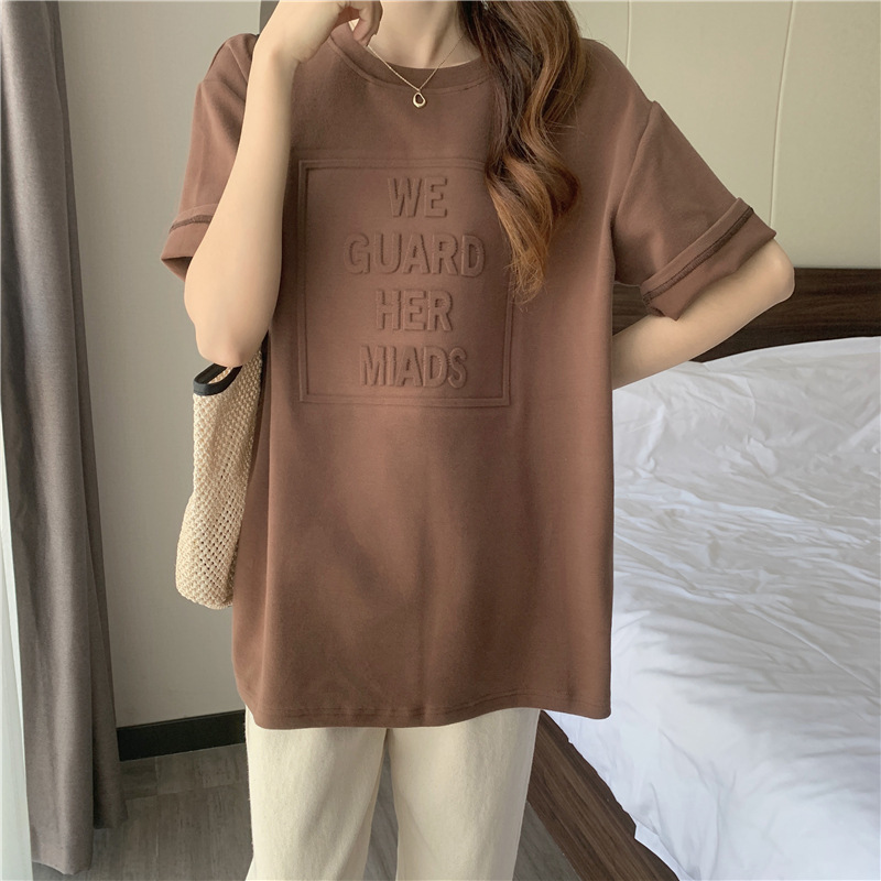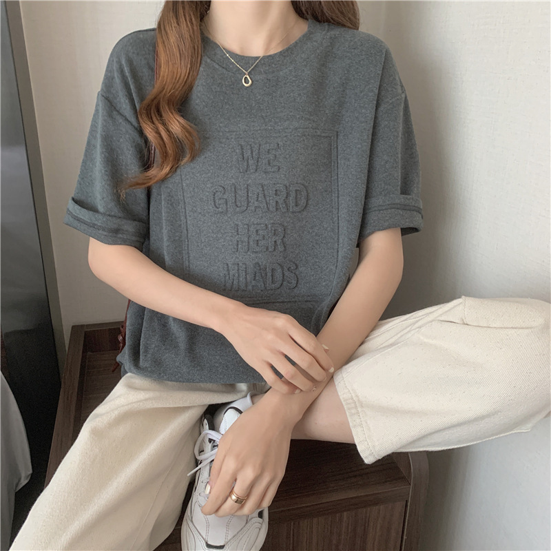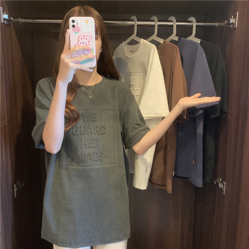 BF 스타일 중간 길이 반팔 티셔츠 여성용 2022 봄과 여름 새로운 루즈한 슬리밍 범프 레터 베이스 셔츠 탑 트렌디스토어 가기