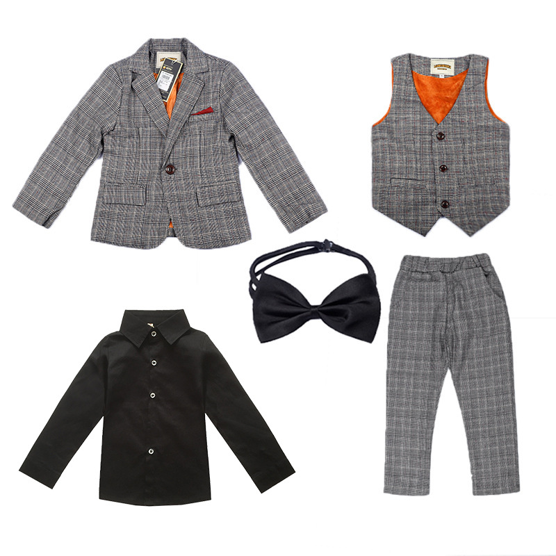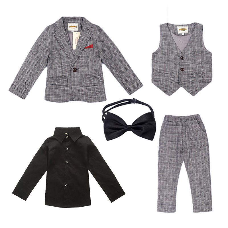 • 회색 격자 5 종 세트 (셔츠 + 나비 넥타이 포함)