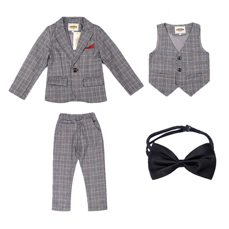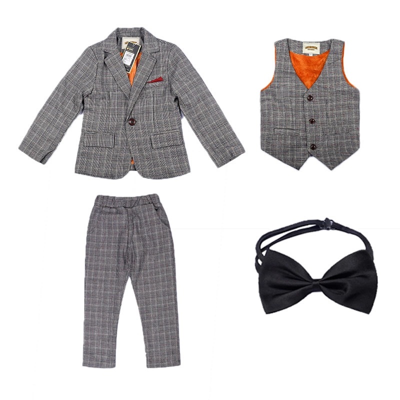 • 기모 회색 격자 4 종 세트 (나비 넥타이 포함)