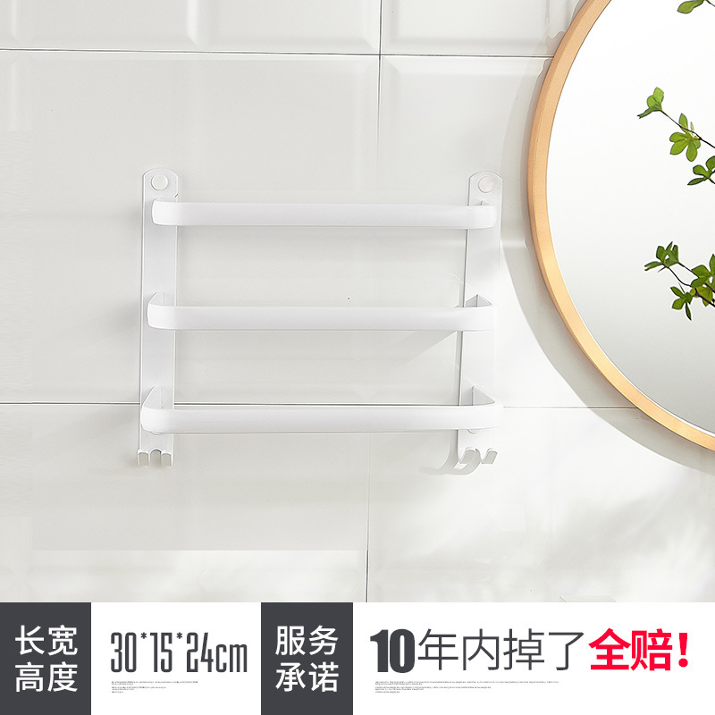 • 알루미늄 다층 타월 랙 B-싱글 로드 30cm 화이트 (천공 손톱 없는 이중 사용)