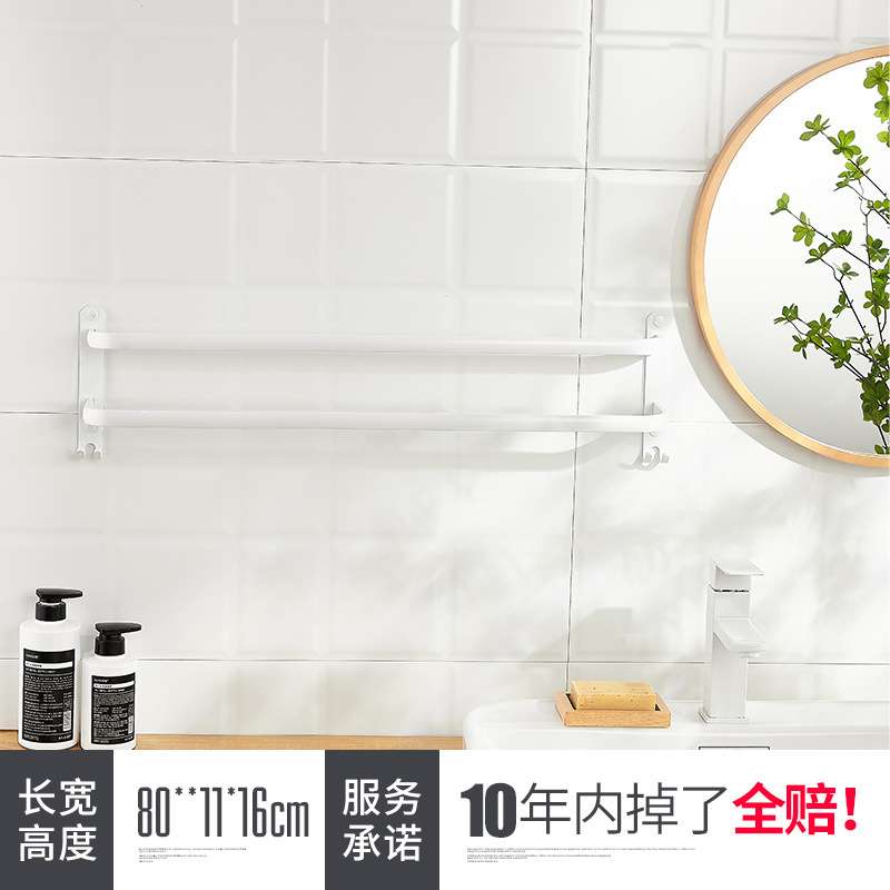 • 알루미늄 다층 타월 랙 B-싱글 로드 80cm 화이트 (천공 손톱 없는 이중 사용)
