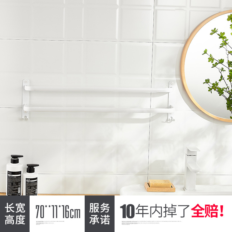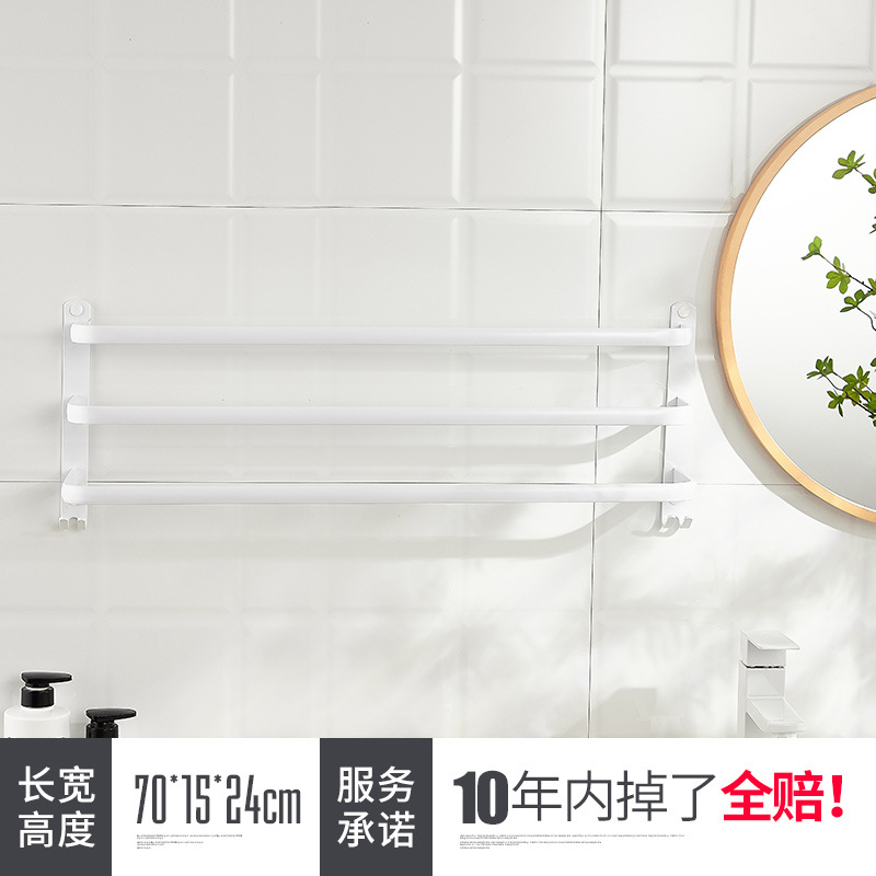 • 알루미늄 다층 타월 랙 B-싱글 로드 70cm 화이트 (천공 손톱 없는 이중 사용)