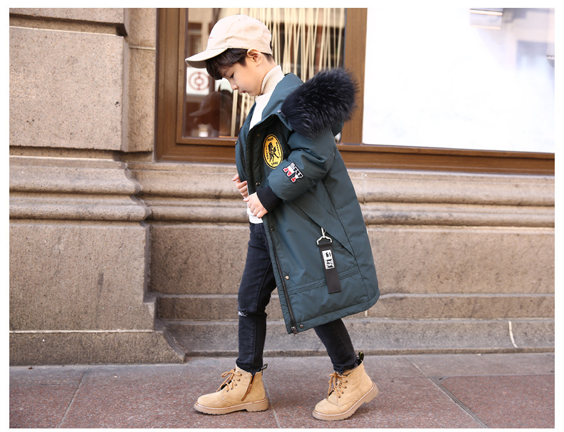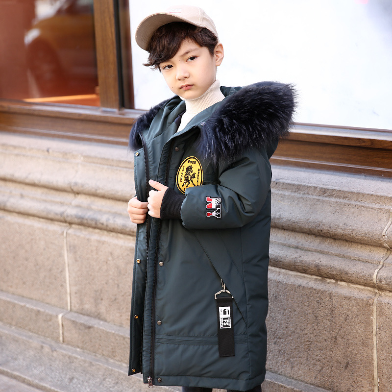아동 방한 의류 2021 새로운 스타일 소년 중대형 아동 두꺼운 중간 길이 한국 스타일 후드 캐주얼 재킷