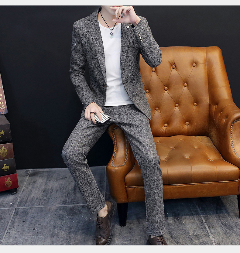 캐주얼 세트 남성 세트 한국 스타일 슬림핏 잘 생긴 세트 가을과 겨울 나이트 클럽 헤어 스타일리스트 재킷 트렌드