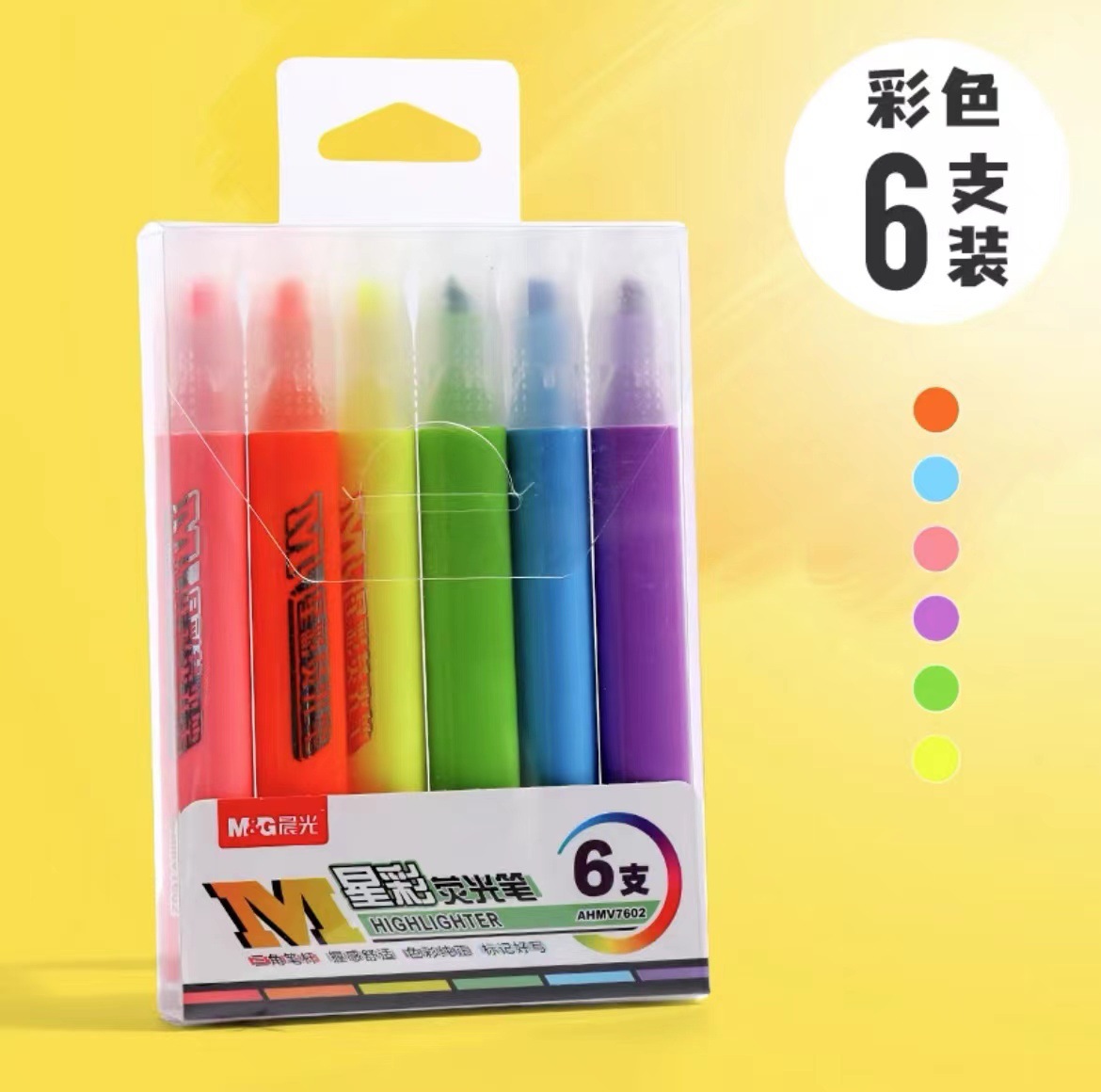 아침 빛 7602 스타 컬러 형광펜 색상 실버 6 색 눈길을 끄는 펜 마커 학생 손 계정 마크 사탕 색상스토어 가기