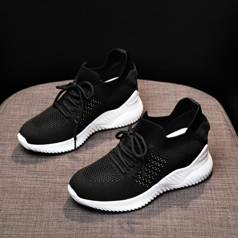 2025년 신상 봄 경량 통기성 여성 스포츠 키높이 캐주얼 신발 플라이 니트 런닝 패션 신발 도매스토어 가기