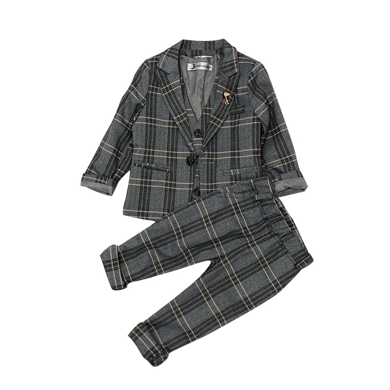• 기모 425 회색 격자 세트 세트 (브로치 빨간 격자 넥타이 보내기)