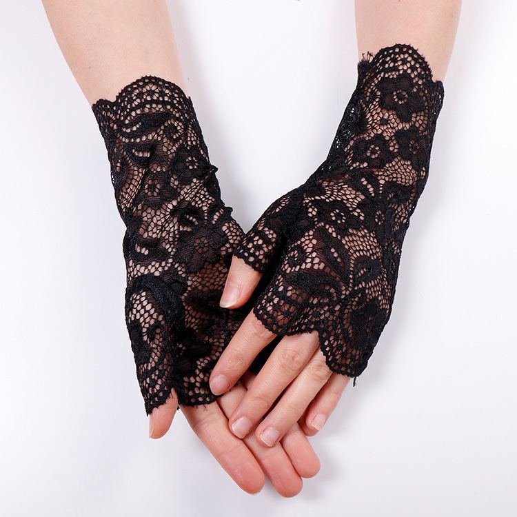 신현-레이스 장갑 길고 얇은 통기성 라이드 운전 에티켓 웨딩 댄스 자외선 차단제 반 손가락 소매