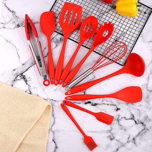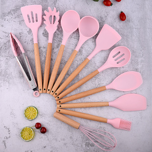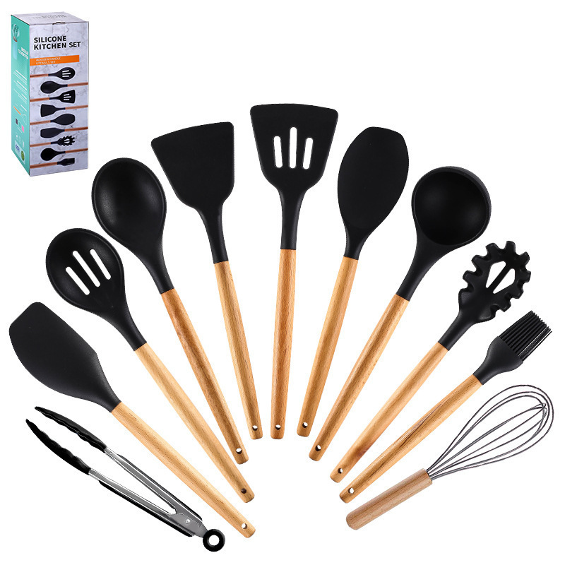 주방 실리콘 도구 논스틱 요리 스푼 주걱 나무 손잡이 실리콘 11 개 세트 실리콘 주방 용품 세트스토어 가기