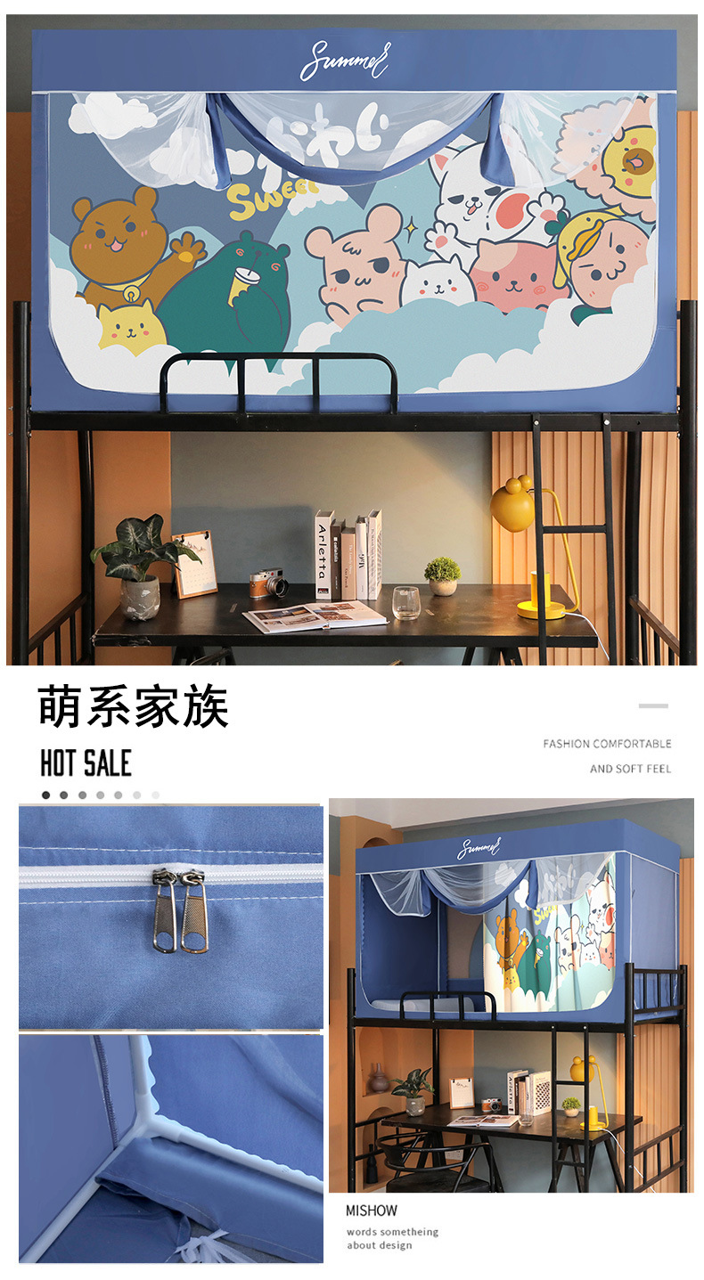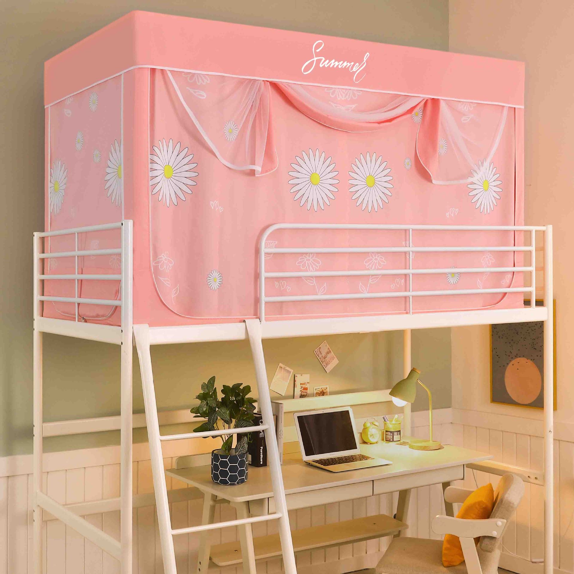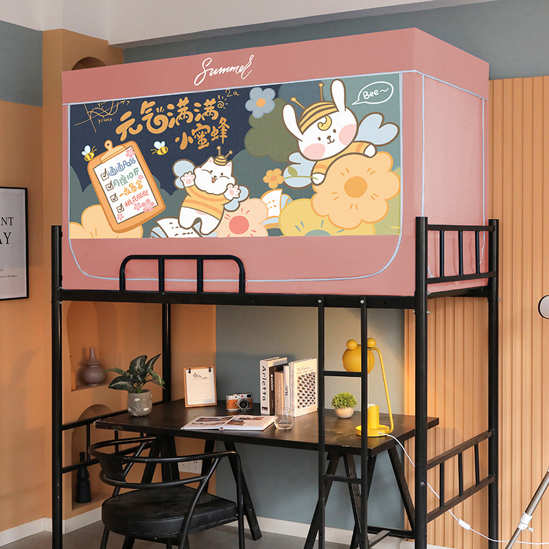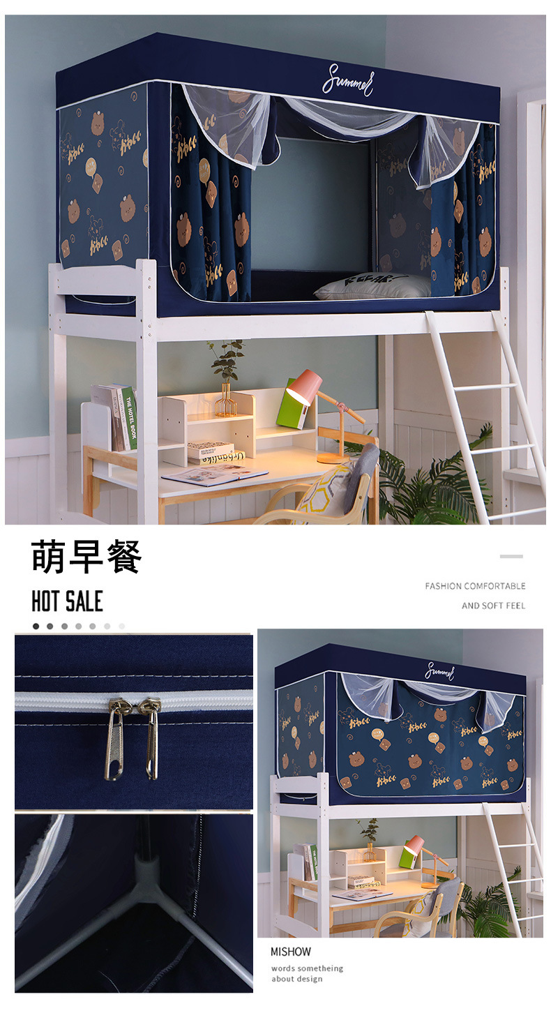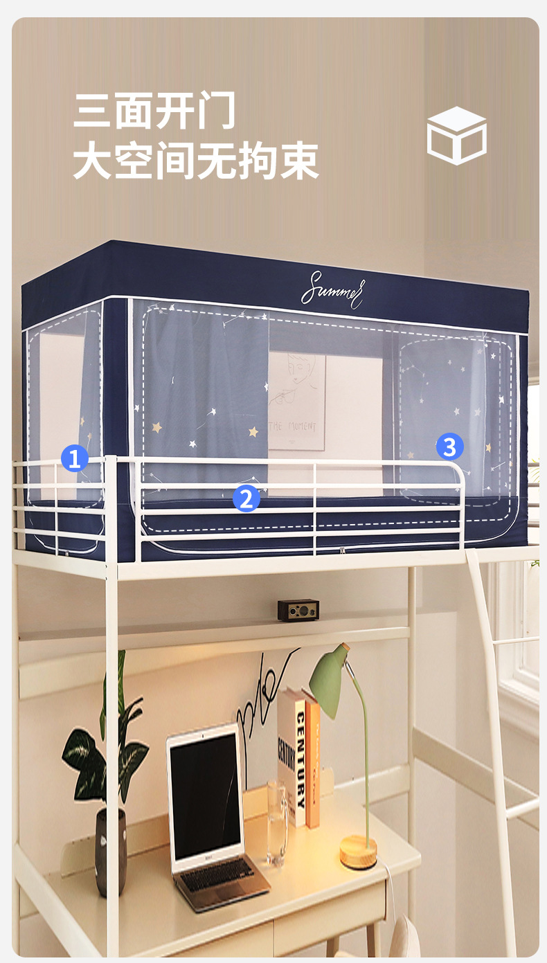 Zhengshun 학생 모기장 기숙사 침실 소년과 소녀를위한 상부 및 하부 부시 음영 브래킷 3 개의 문이있는 통합 침대 커튼스토어 가기