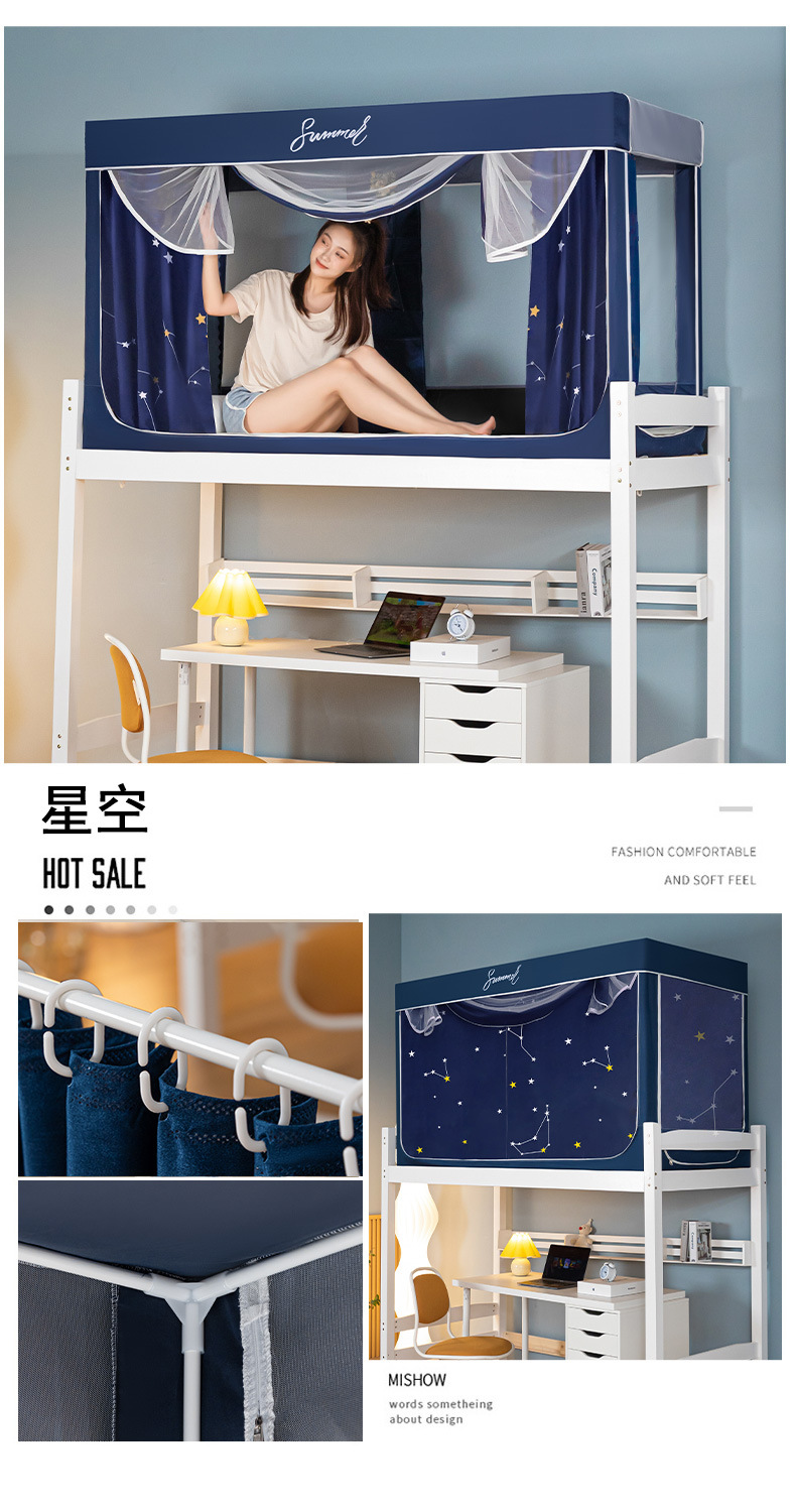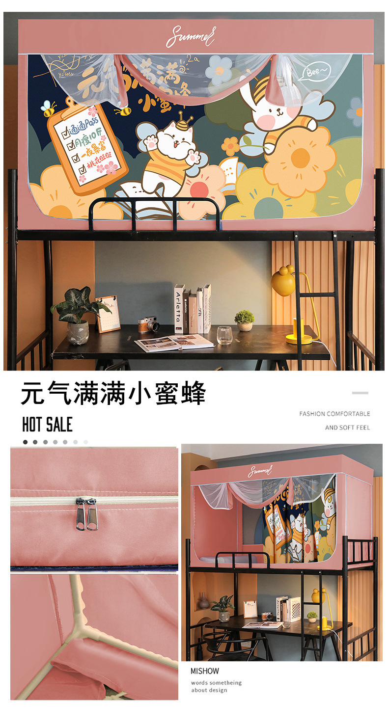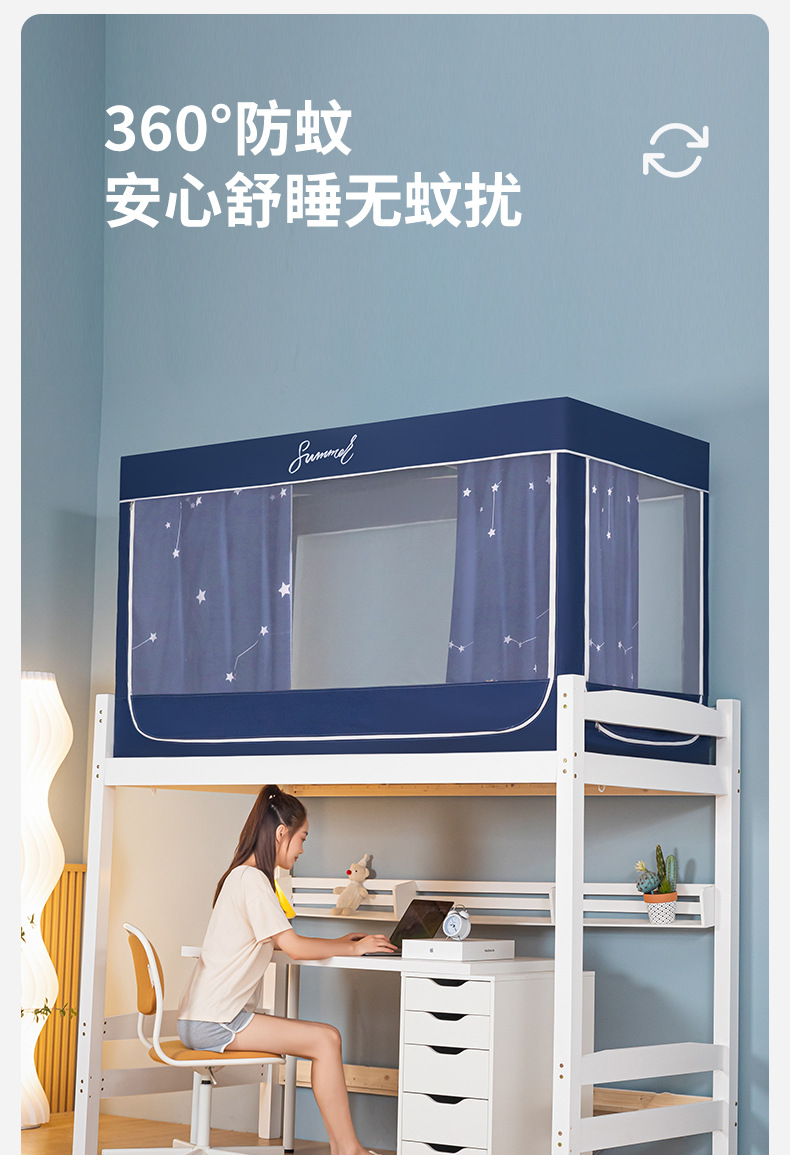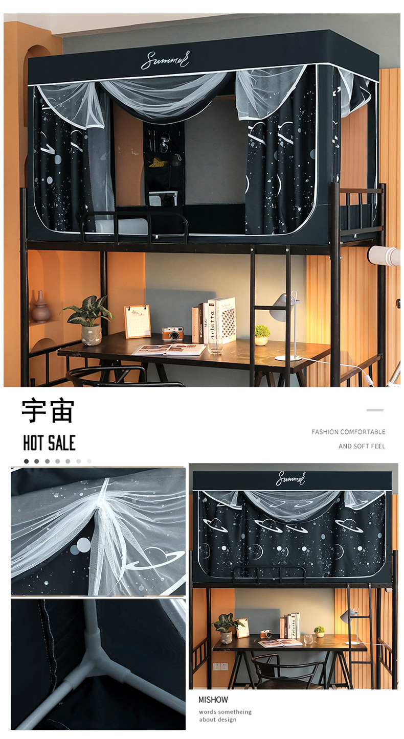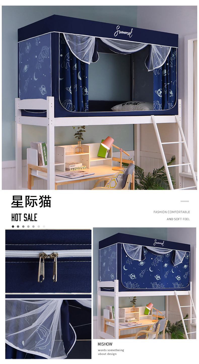 Zhengshun 학생 모기장 기숙사 침실 소년과 소녀를위한 상부 및 하부 부시 음영 브래킷 3 개의 문이있는 통합 침대 커튼스토어 가기