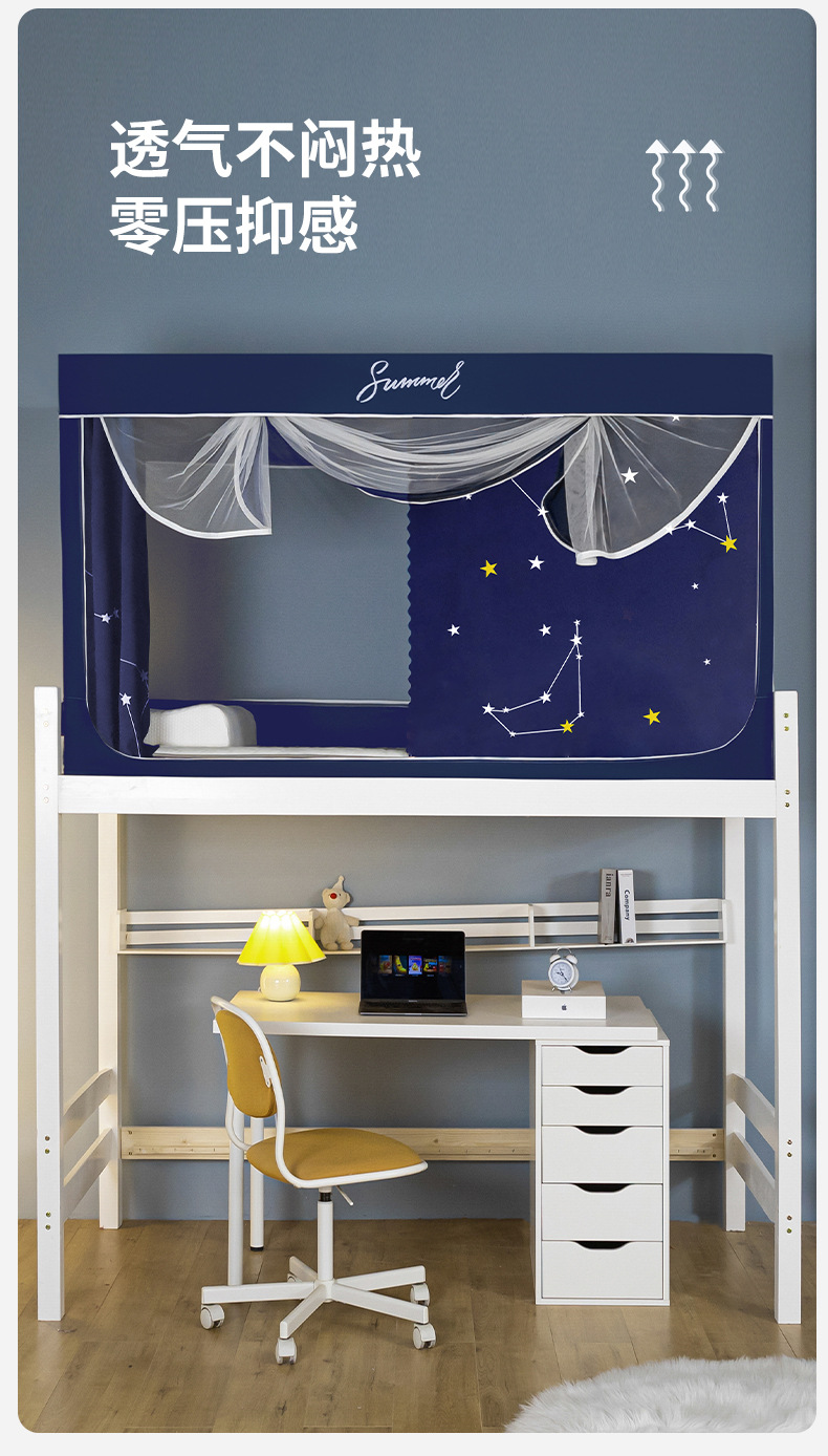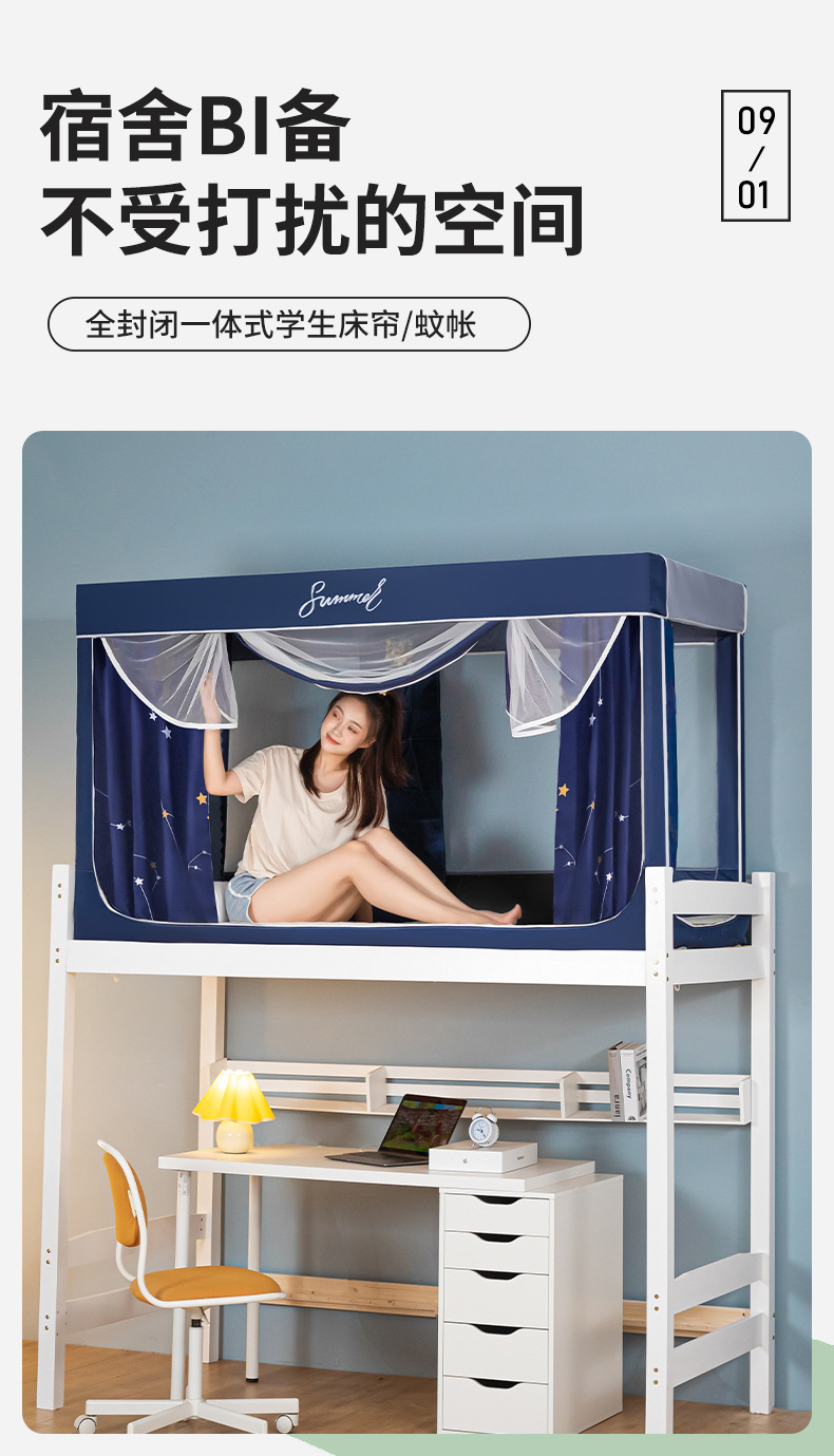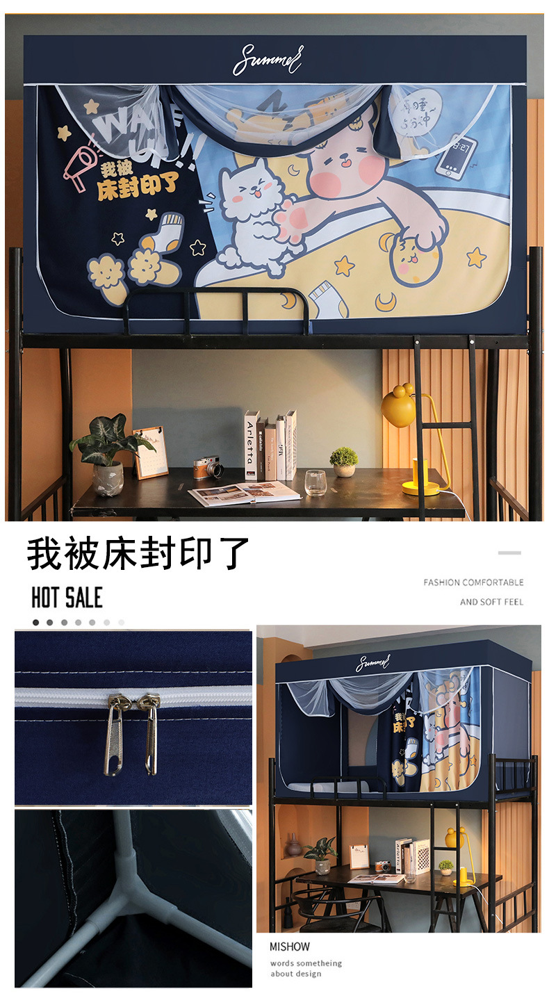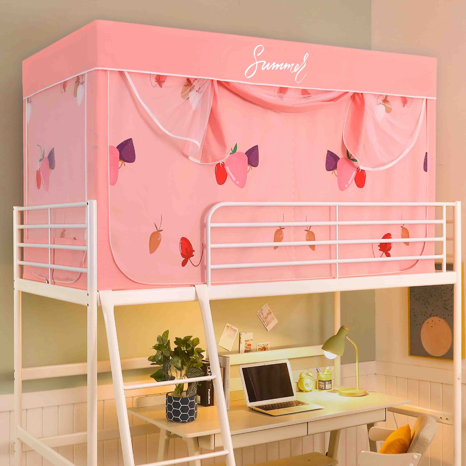 Zhengshun 학생 모기장 기숙사 침실 소년과 소녀를위한 상부 및 하부 부시 음영 브래킷 3 개의 문이있는 통합 침대 커튼스토어 가기