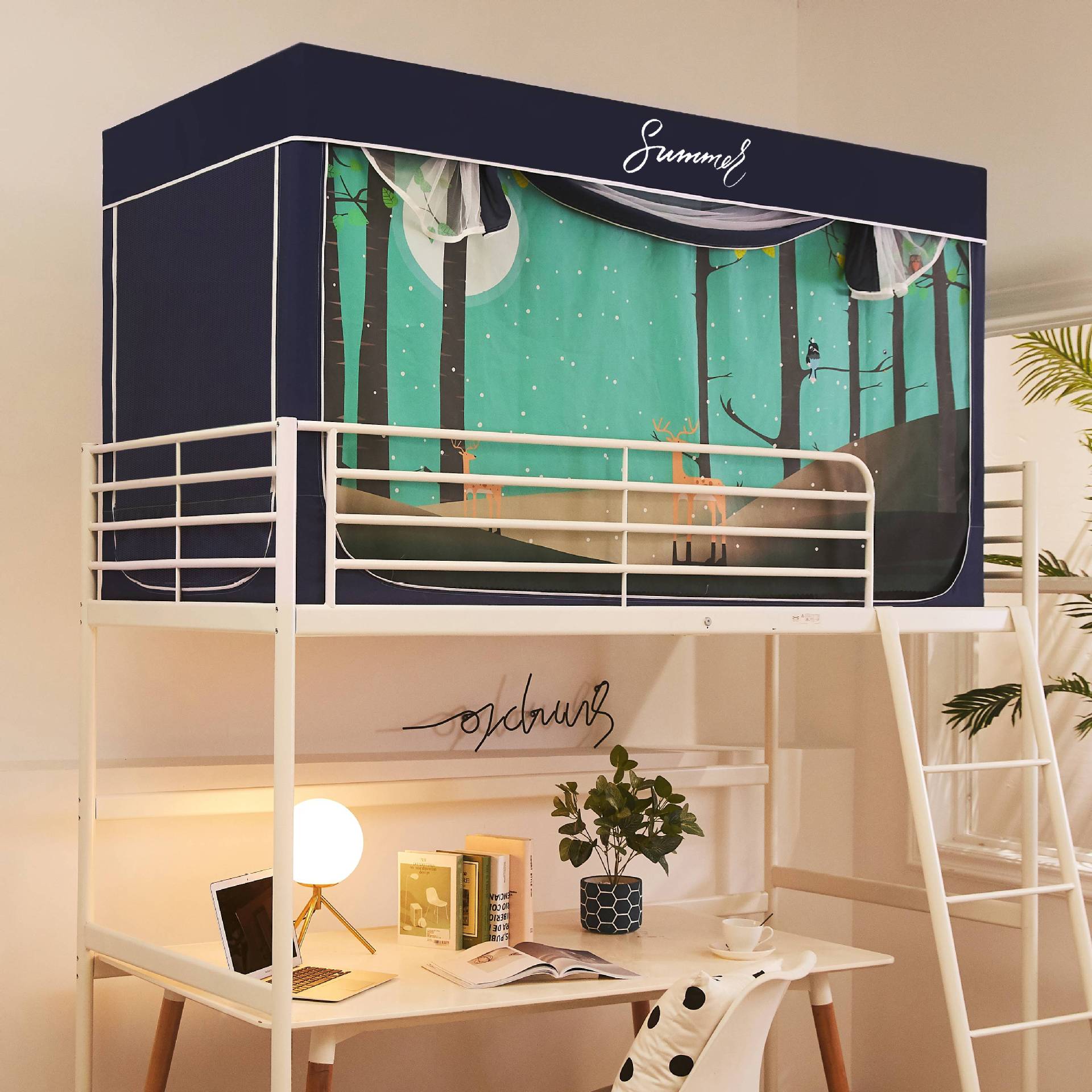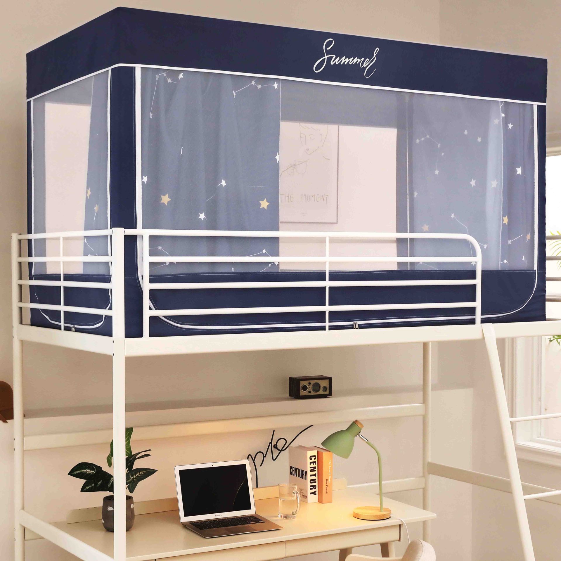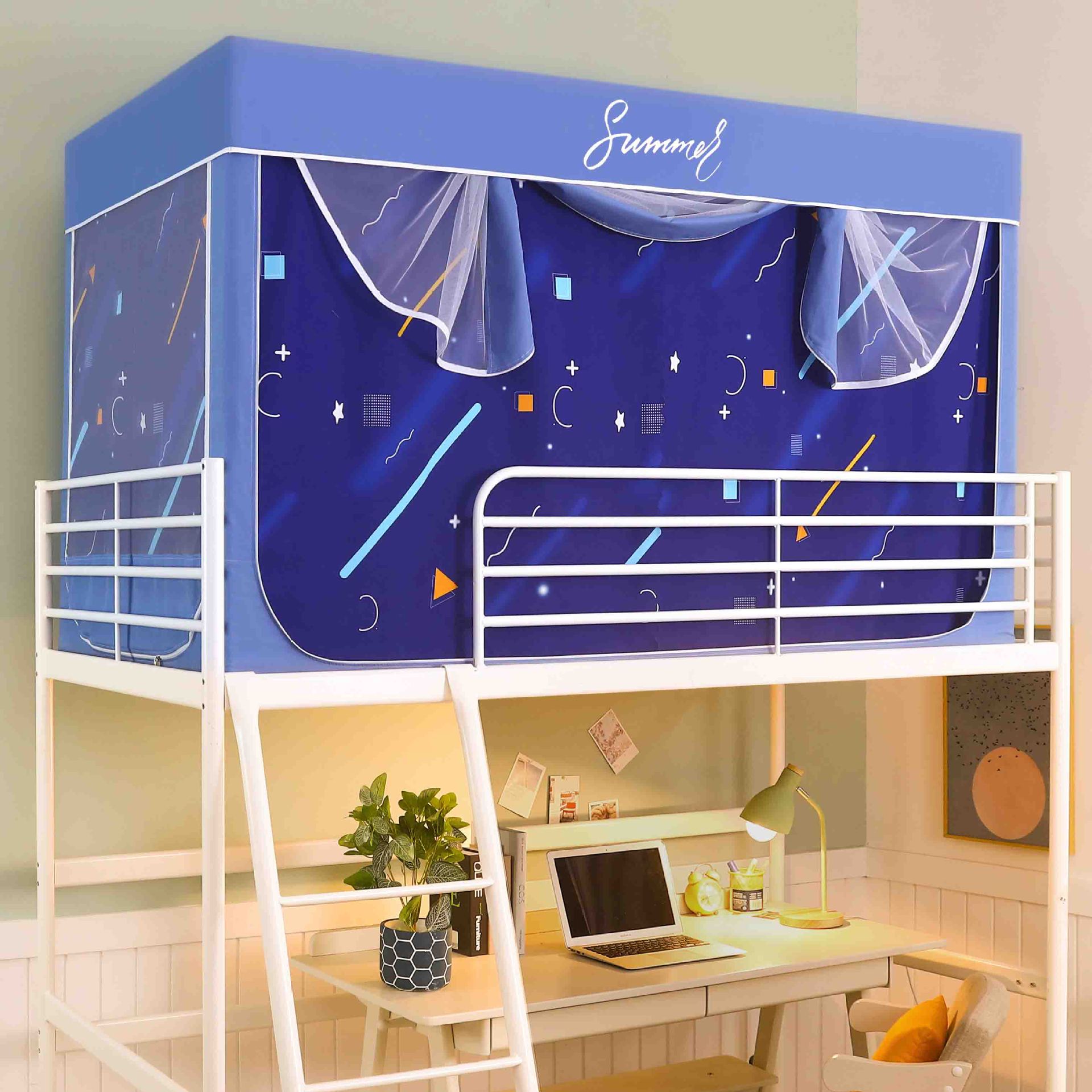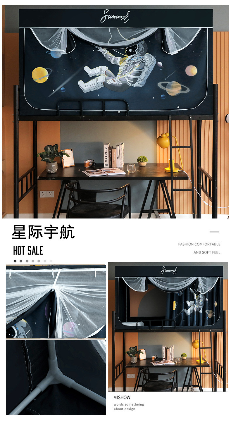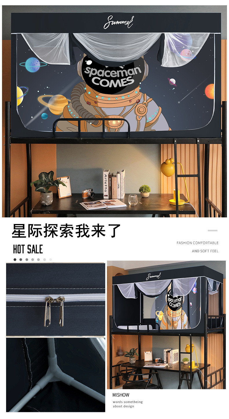 Zhengshun 학생 모기장 기숙사 침실 소년과 소녀를위한 상부 및 하부 부시 음영 브래킷 3 개의 문이있는 통합 침대 커튼스토어 가기