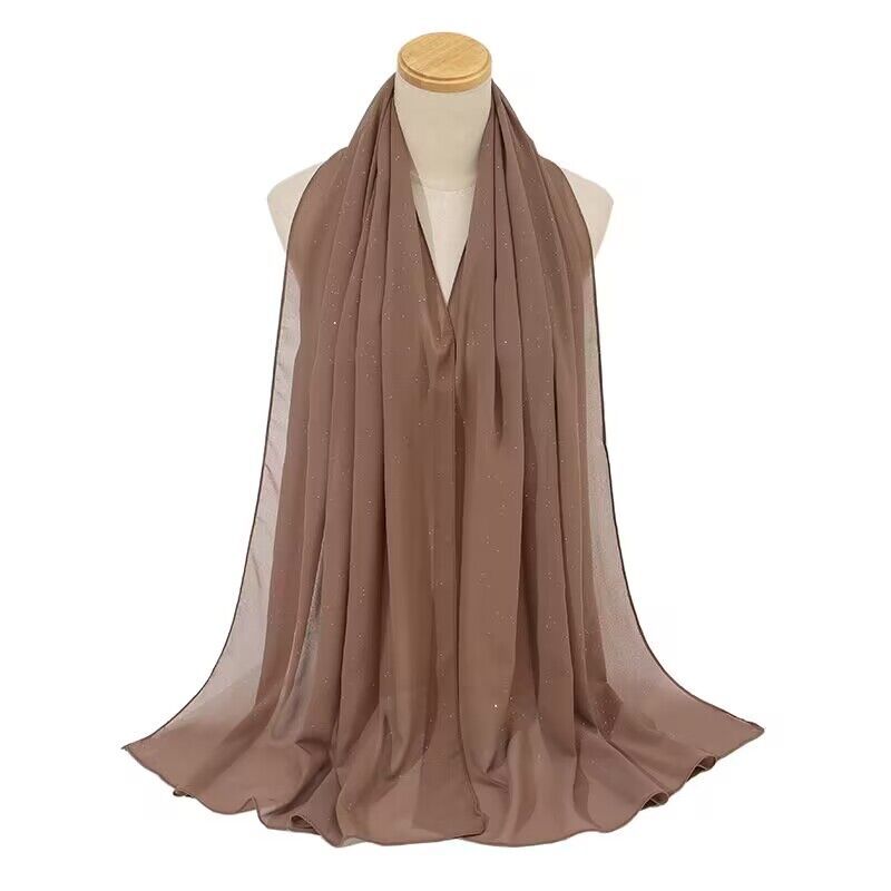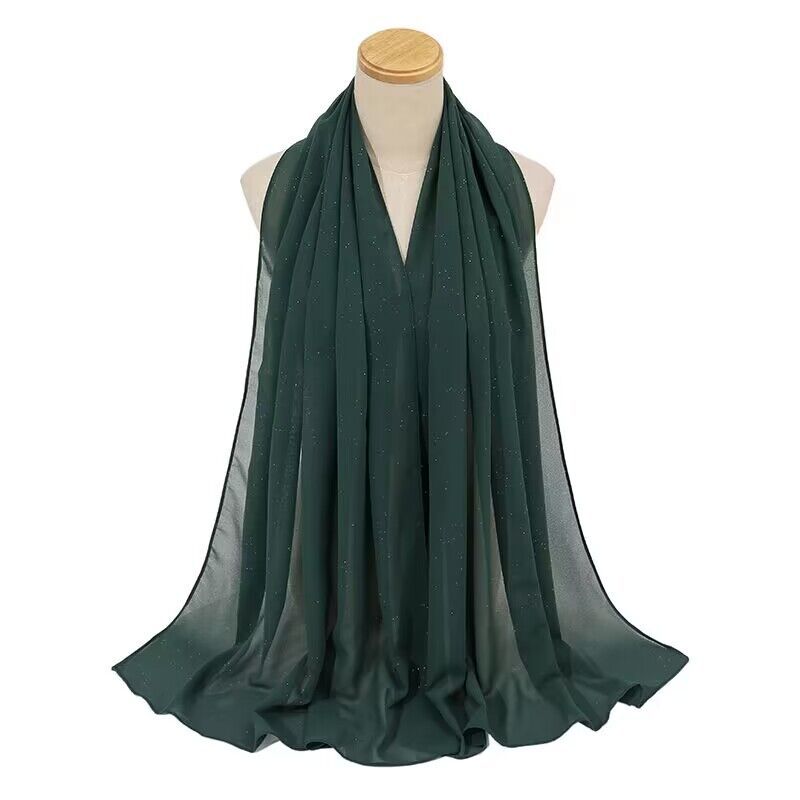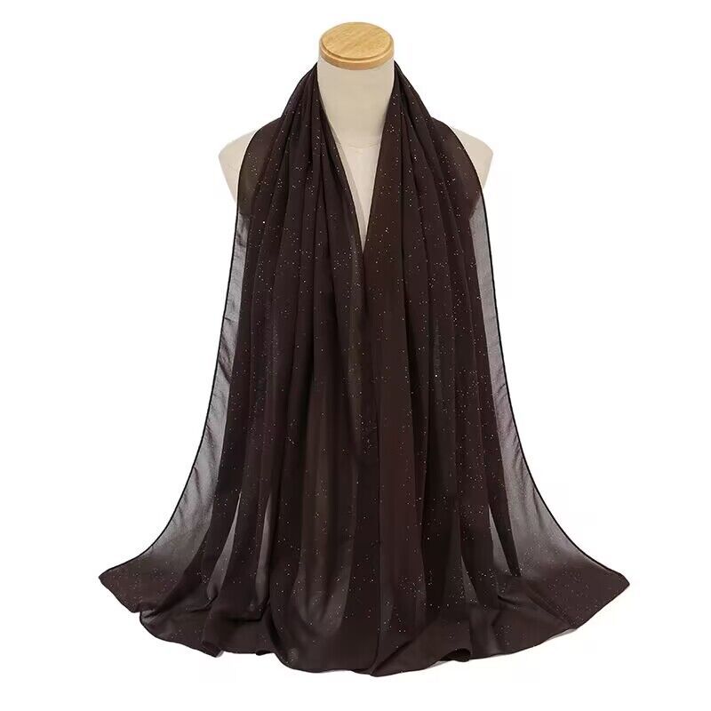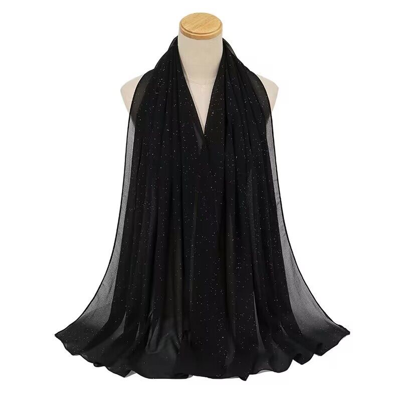 新款洒金珍珠雪纺围巾女士烫金长巾薄款透气披肩纱巾 YS012