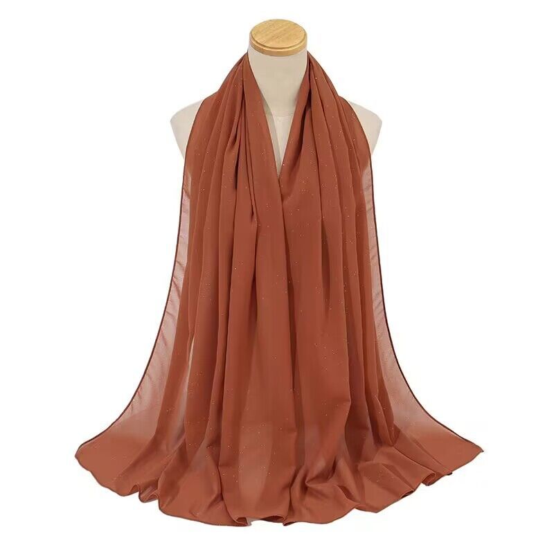 새로운 금 진주 쉬폰 스카프 여성용 브론징 긴 수건 얇은 통기성 목도리 단색 거즈 YS012