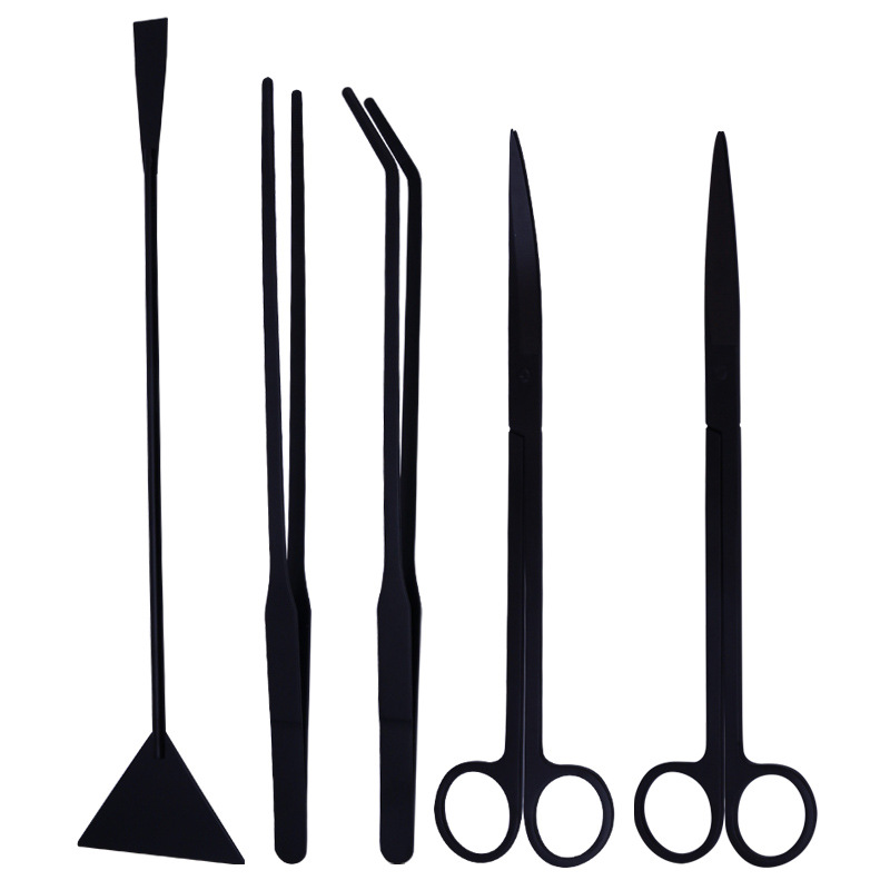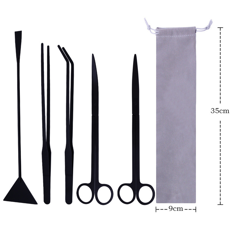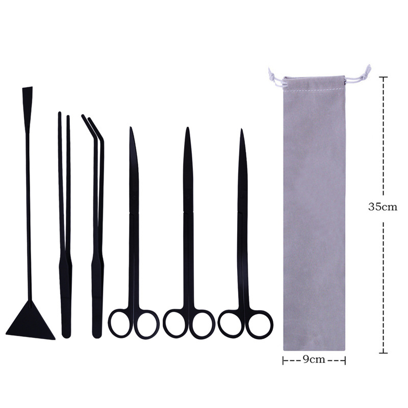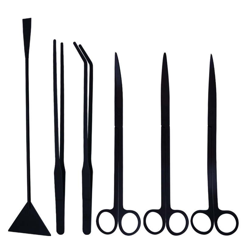 수족관 물 잔디 도구 키트 검은 물 잔디 트리밍 스테인레스 스틸 물 잔디 커터 핀셋 6 개 세트 수족관 상점 평평한 모래 도구