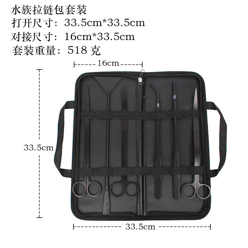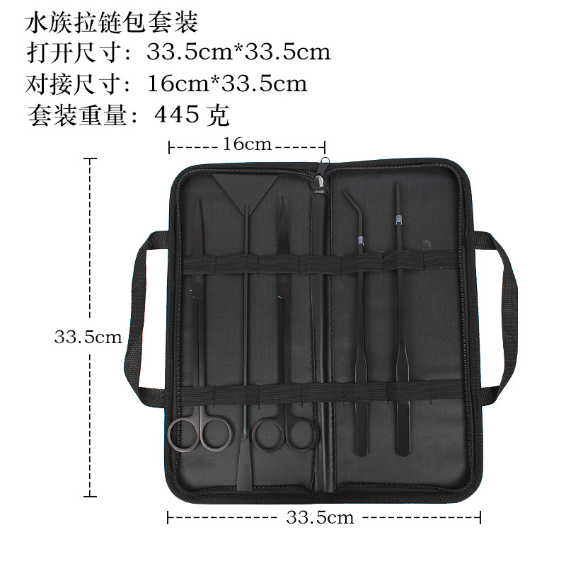 • 블랙 탄산 6 종 세트 플러스 지퍼 백 32cm 평평한 모래 27cm 직선 및 곡선 핀셋 25cm 직선 가위 곡선 가위 웨이브 가위