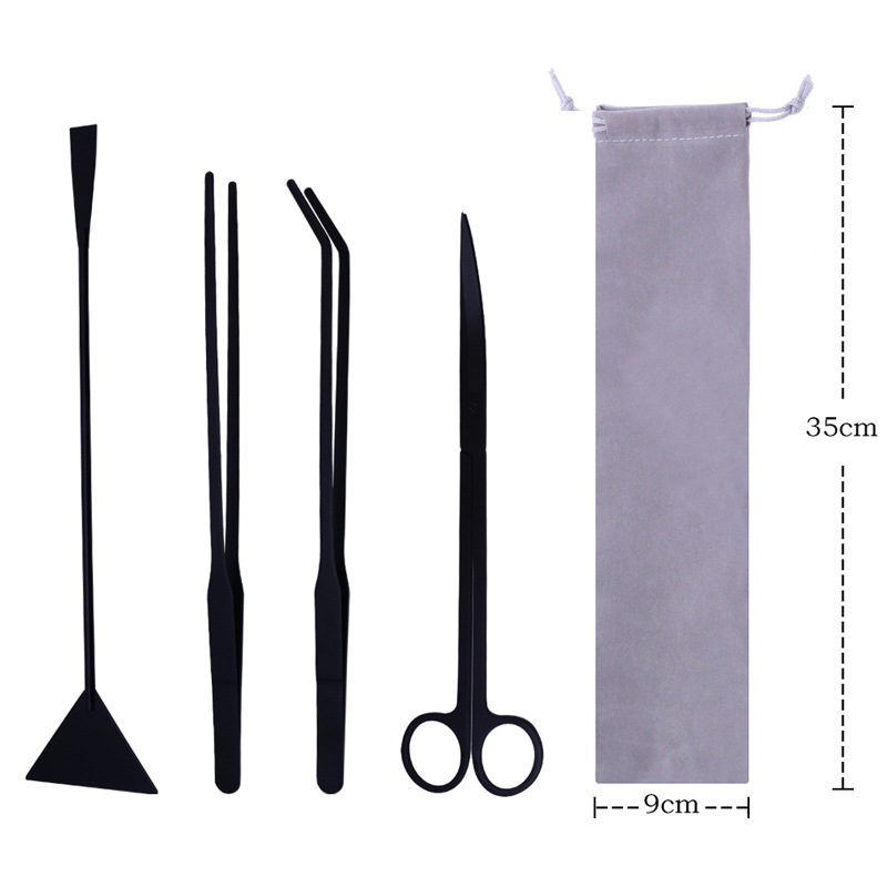 • 검은 탄화 된 4 피스 세트 32cm 평평한 모래 27cm 직선과 곡선 핀셋 25cm 곡선 가위와 플란넬 백