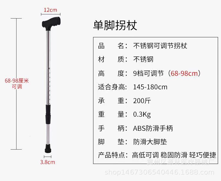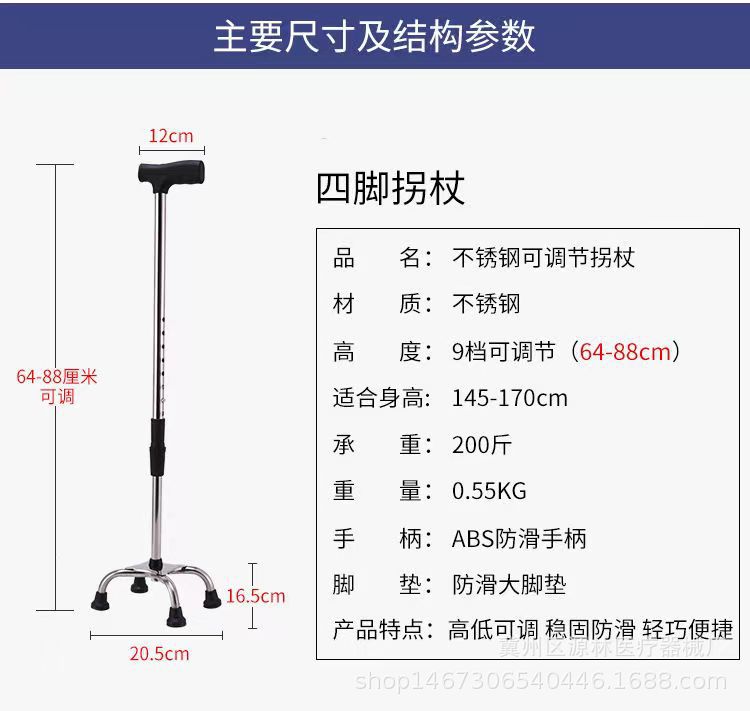 제조업체 재고 도매 의료용 지팡이 노인용 지팡이 겨드랑이 지팡이 이중 지팡이 네 모서리 미끄럼 방지 안정적 신축성 지팡이스토어 가기