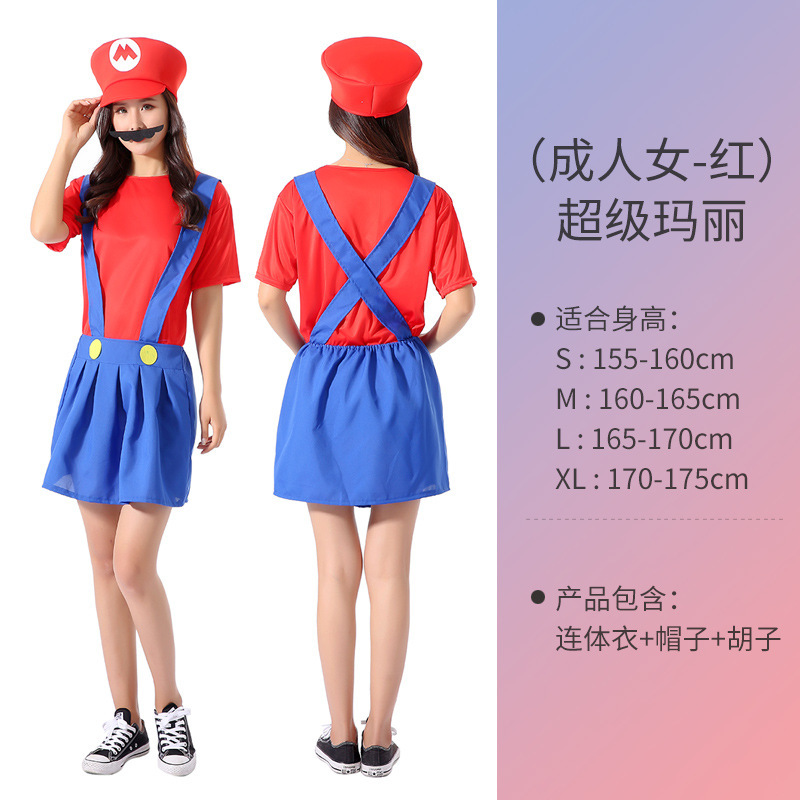 할로윈 슈퍼마리오 코스프레 의상 부모자식 코스프레 퍼프 소매 마리오 애니메이션 공연 의상스토어 가기