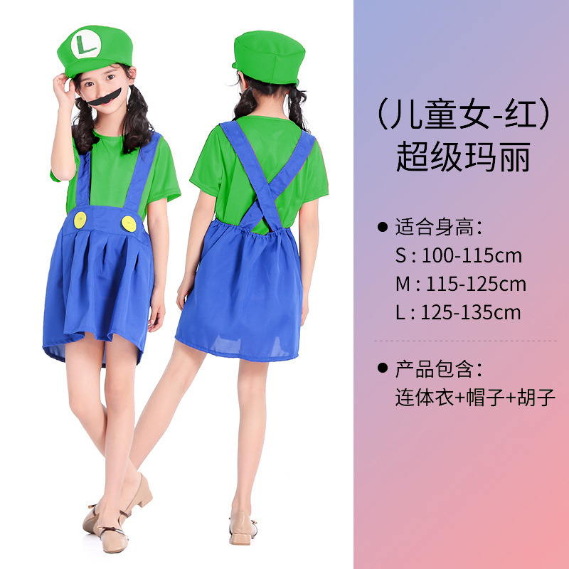 할로윈 슈퍼마리오 코스프레 의상 부모자식 코스프레 퍼프 소매 마리오 애니메이션 공연 의상