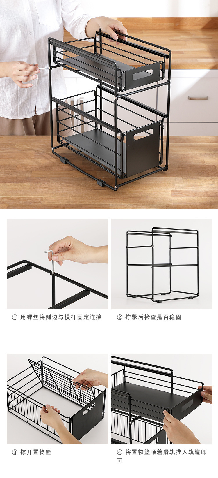 다기능 가정용 주방 싱크대 수납 랙 플로어 스탠딩 다층 드로잉 이동식 주방 용품 보관 선반