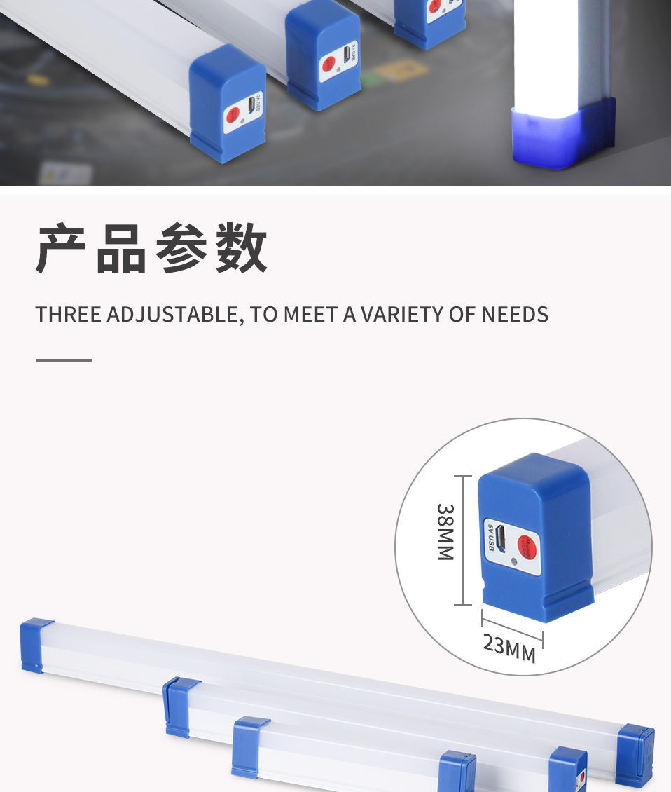 Led 비상 튜브 충전식 무선 자체 접착 핸드 헬드 스톨 야간 시장 조명 야외 가정 정전 조명 벨트