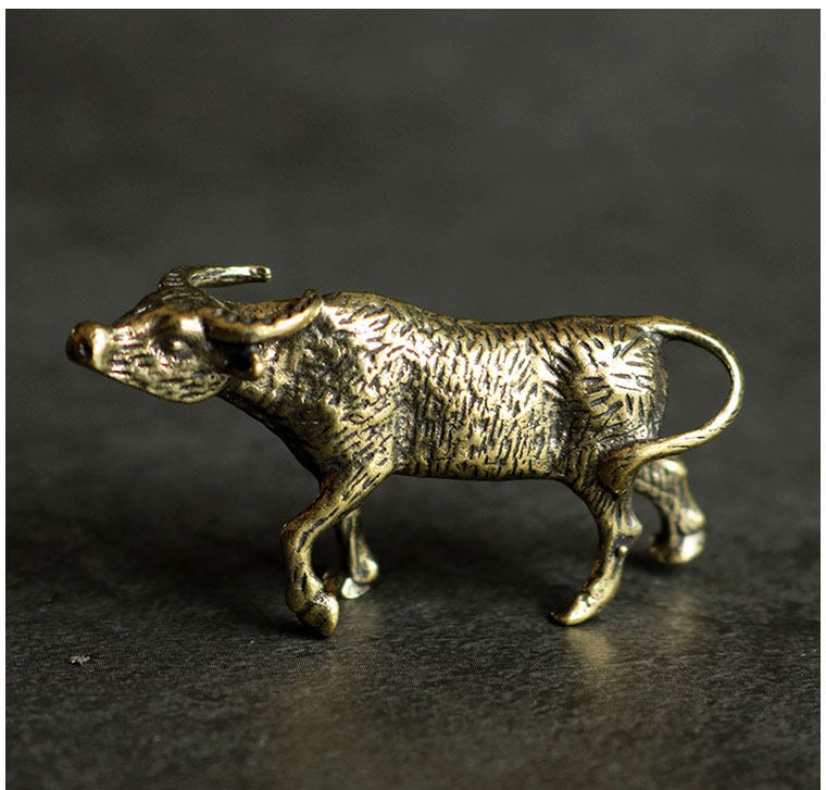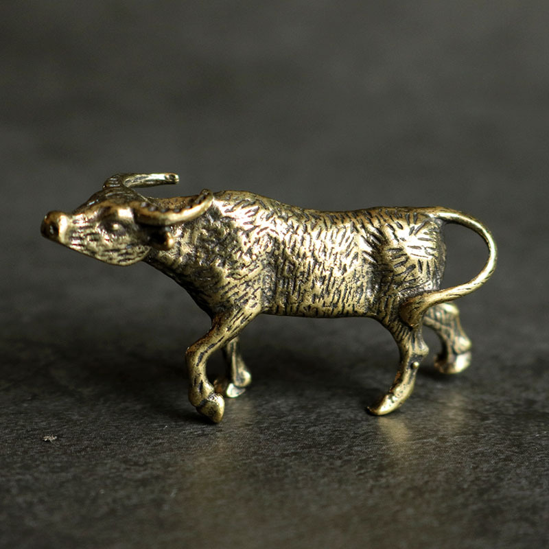 솔리드 순수 황동 사무실 데스크탑 조디악 암소 작은 장식품 청동 차 애완 동물 보석 공예 선물 손잡이 놀이 조각스토어 가기