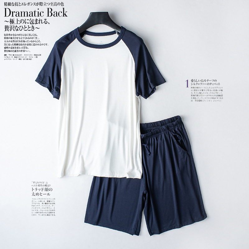모달 남성용 반팔 티셔츠 어깨 색상 맞추기 여름 반팔 캐주얼 느슨한 가정복 잠옷을 세트 수 있습니다스토어 가기