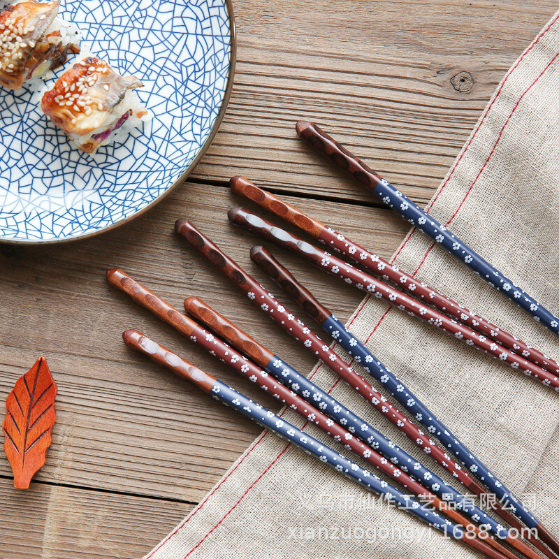 • @小木仙 日式樱花筷子家用实木高档家用木质网红防滑筷子金花筷子