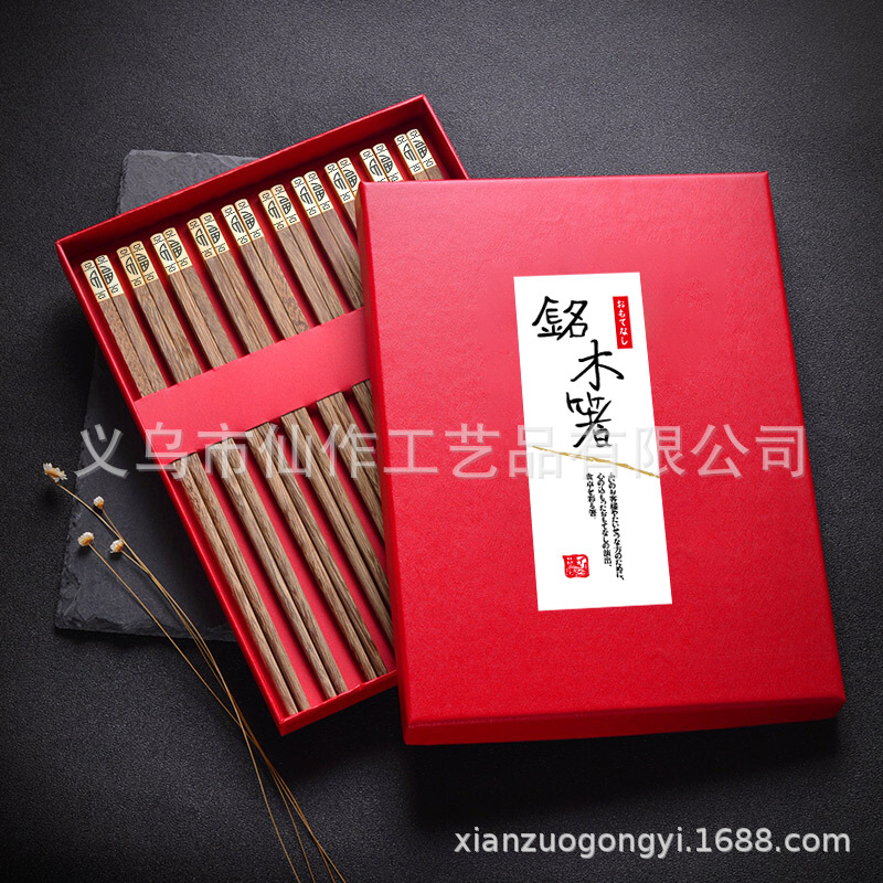 • 国风礼品餐具礼盒装红木筷子鸡翅木筷子政府100周年礼品可定制