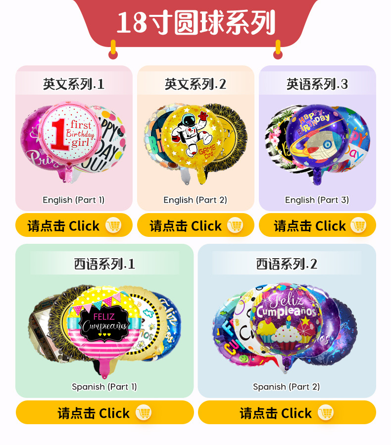 18 인치 생일 영어 라운드 알루미늄 필름 풍선 생일 파티 파티 장식 패턴 알루미늄 호일 풍선스토어 가기