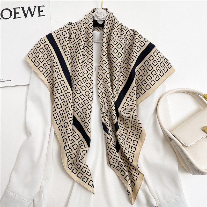 봄과 여름 레저 스트라이프 스카프 여성용 여행 실크 스카프 자외선 차단제 숄 능직 실크 대형 사각 스카프 패션 숄 머리 스카프스토어 가기