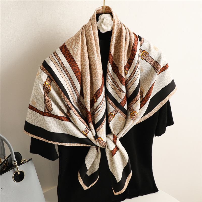 봄과 여름 레저 스트라이프 스카프 여성용 여행 실크 스카프 자외선 차단제 숄 능직 실크 대형 사각 스카프 패션 숄 머리 스카프