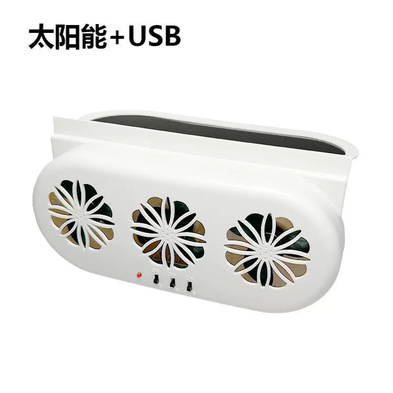 【产品特点】:强劲动力、双头风扇、三挡强劲风力、车载usb接口、家车两用、轻松安装