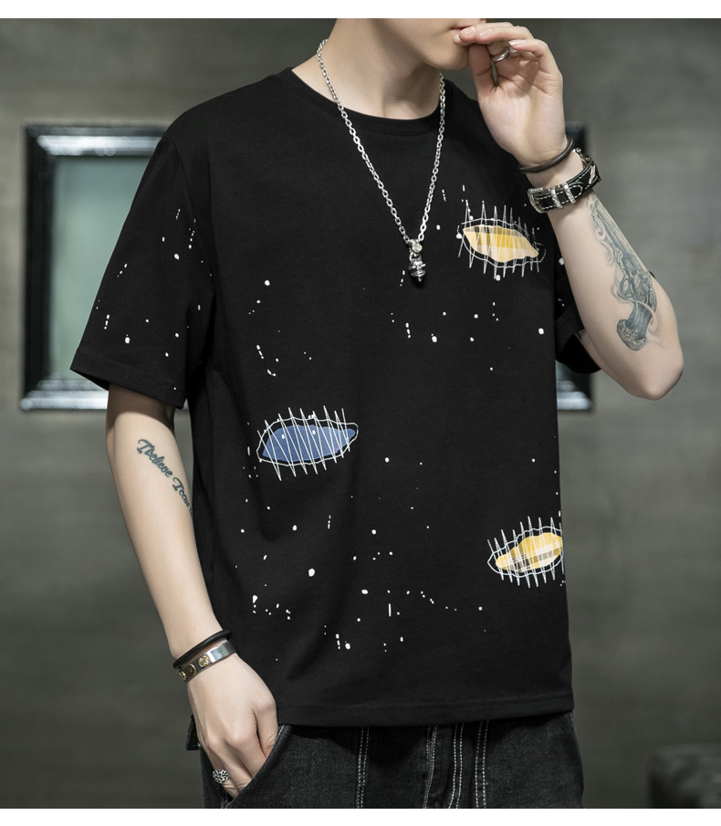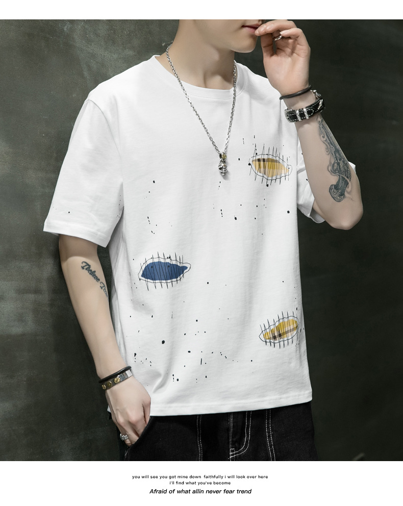 무료 배송 반팔 남성 여름 티셔츠 잘 생긴 라운드 넥 루즈한 티셔츠 남성 패션 반팔 탑 21021스토어 가기