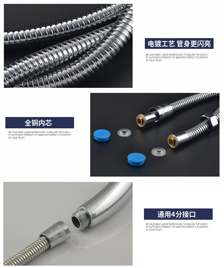 샤워 호스 스테인레스 스틸 암호화 도금 빗관 온수기 샤워 노즐 샤워 호스 1.5 미터 2/3 미터