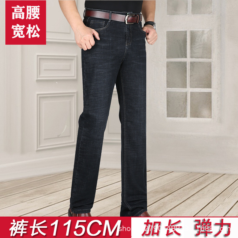加长牛仔裤男高腰宽松直筒弹力男裤裤长115厘米