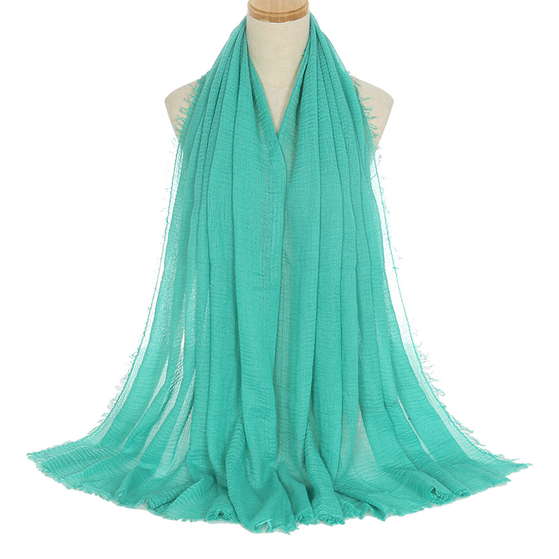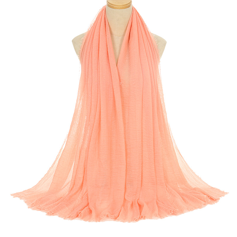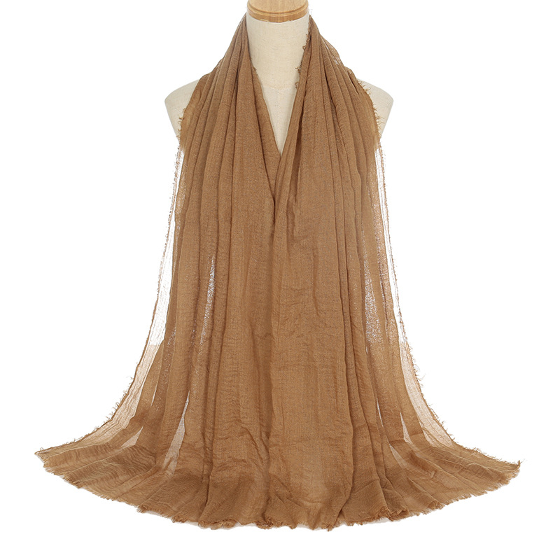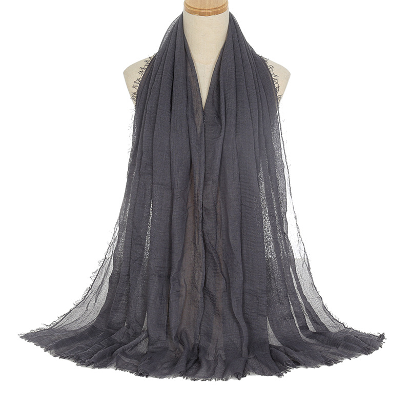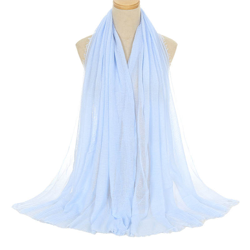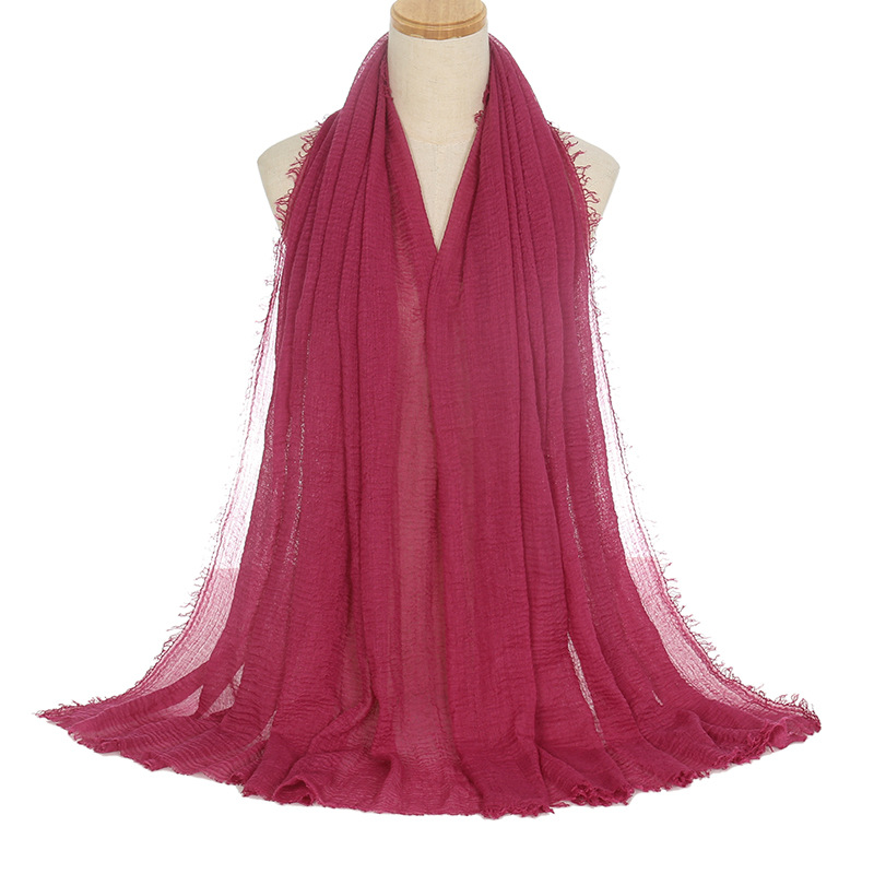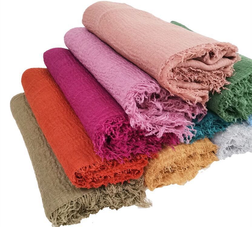 新款棉麻毛须边围巾褶皱长巾女士压皱披肩  YS019