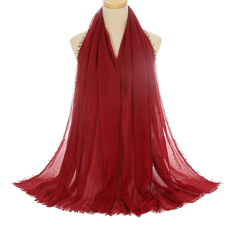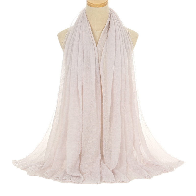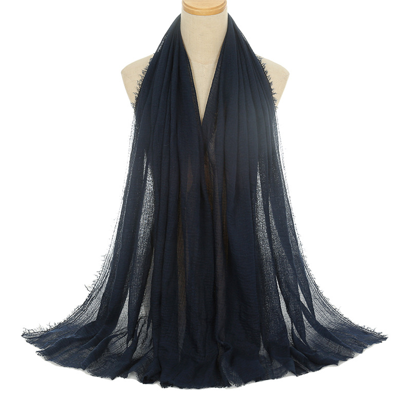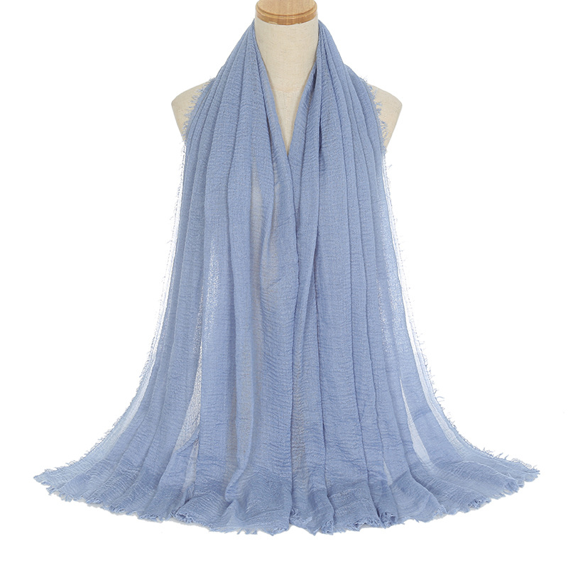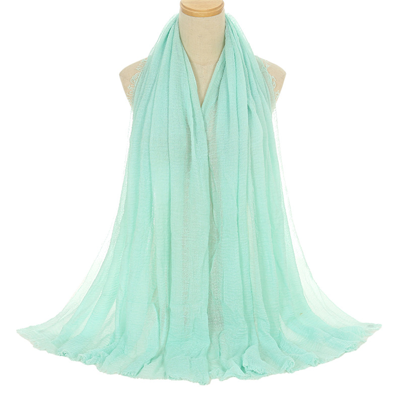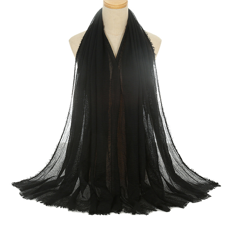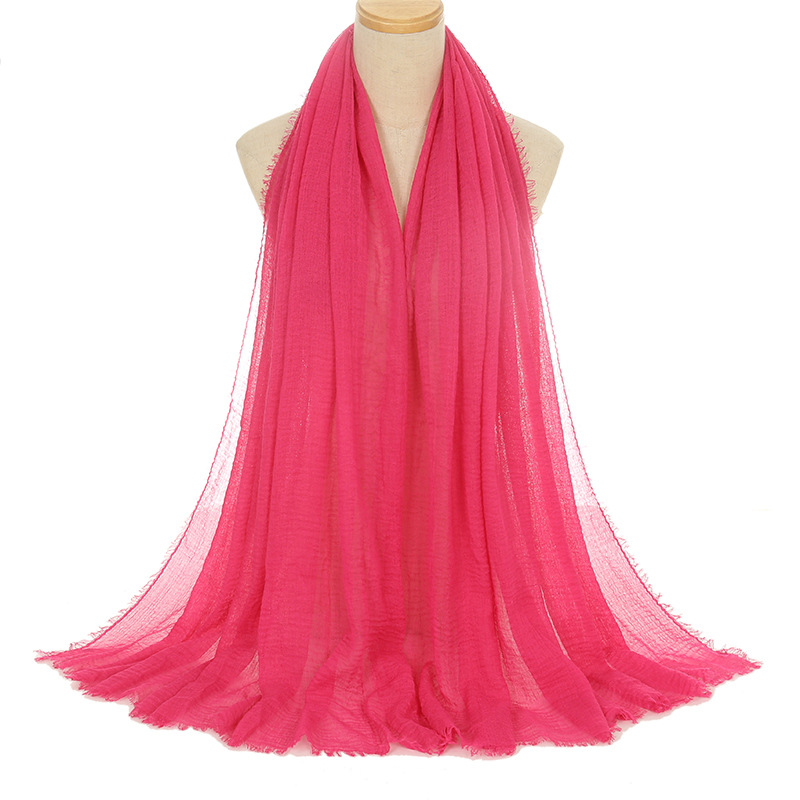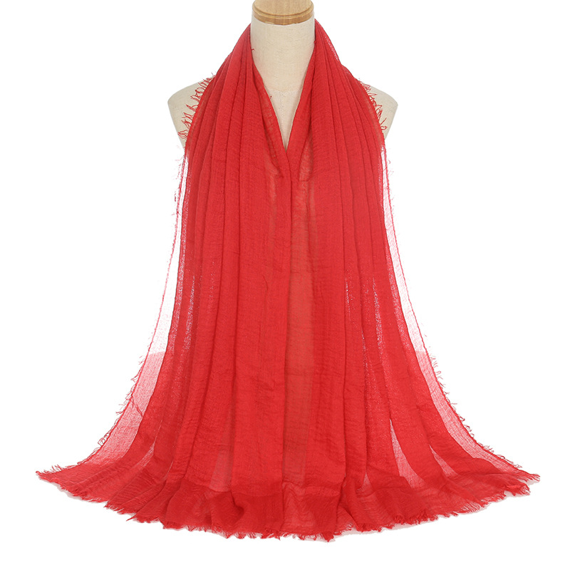 新款棉麻毛须边围巾褶皱长巾女士压皱披肩  YS019