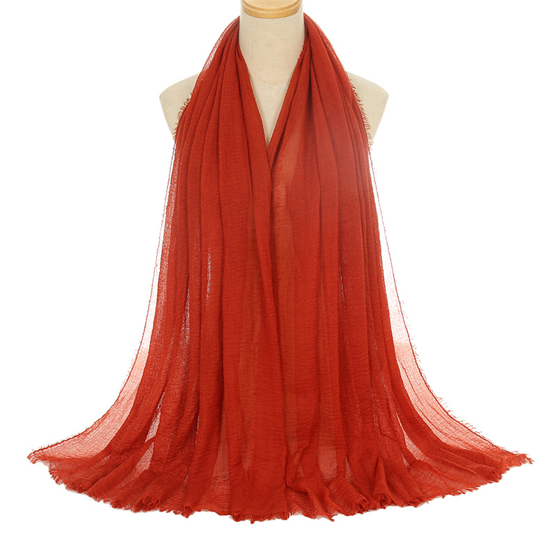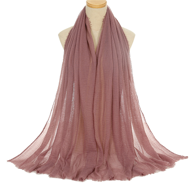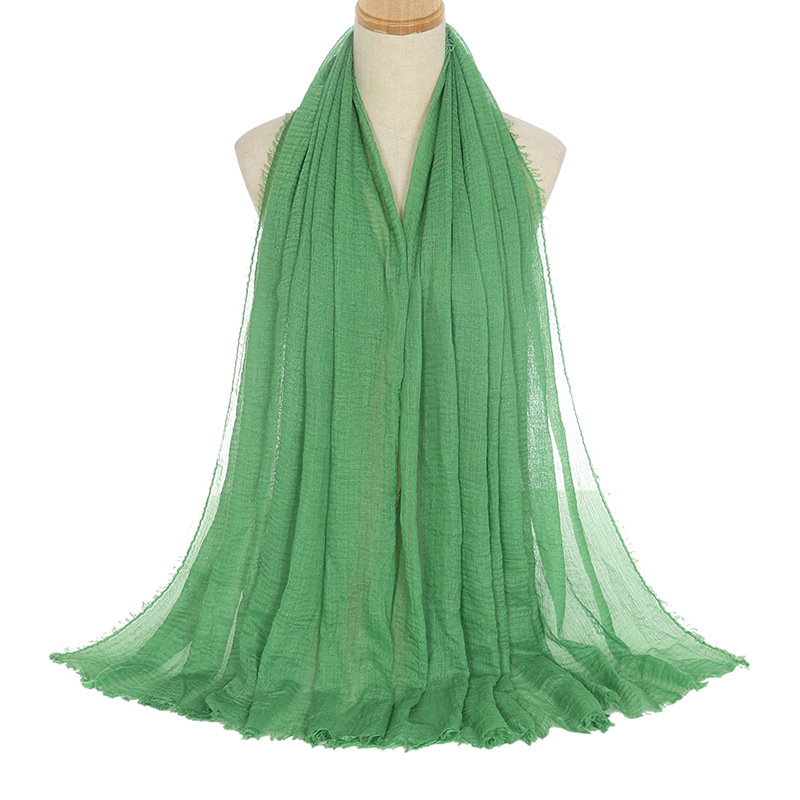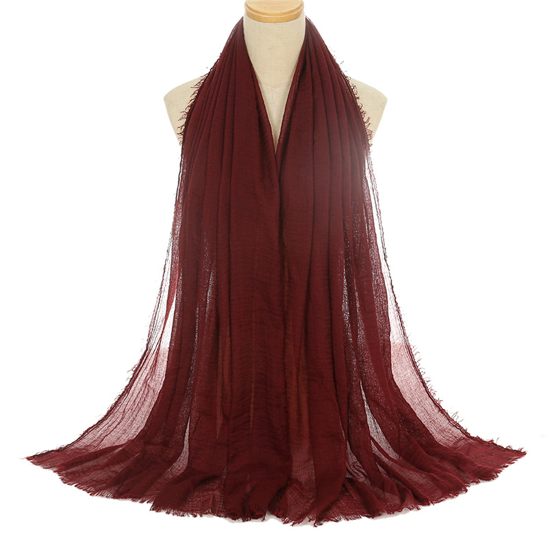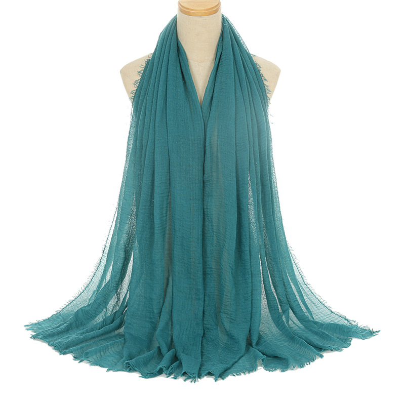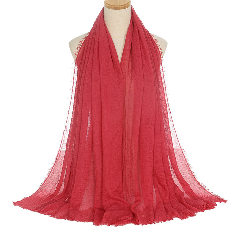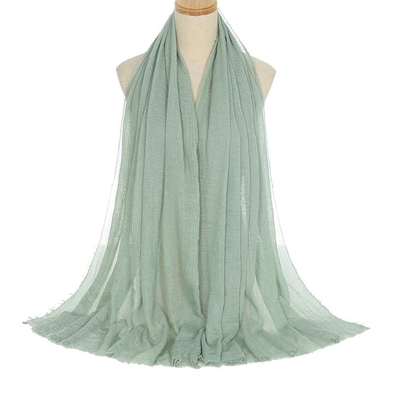 新款棉麻毛须边围巾褶皱长巾女士压皱披肩  YS019