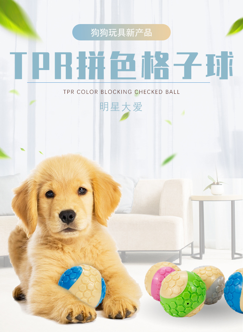 공장 직접 크로스 보더 새로운 TPR 컬러 매칭 체크 사운드 볼 6cm 개 장난감 애완 동물 대화 형 개 사랑스토어 가기