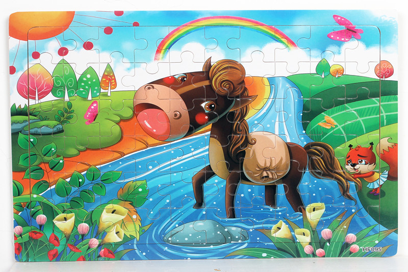 나무 60 조각 퍼즐 어린이 동물 만화 동화 비행기 퍼즐 아기 조기 교육 교육 빌딩 블록 장난감