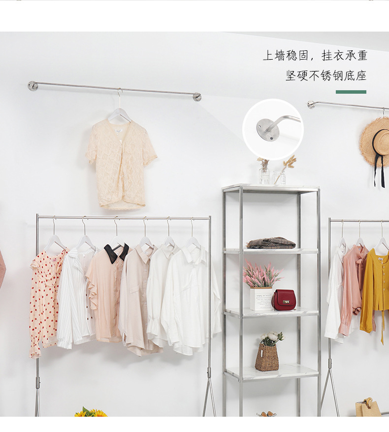 의류 매장 스테인레스 스틸 행거 디스플레이 스탠드 바닥 형 중다오 선반 실버 여성 의류 매장 의류 디스플레이 스탠드 조합스토어 가기